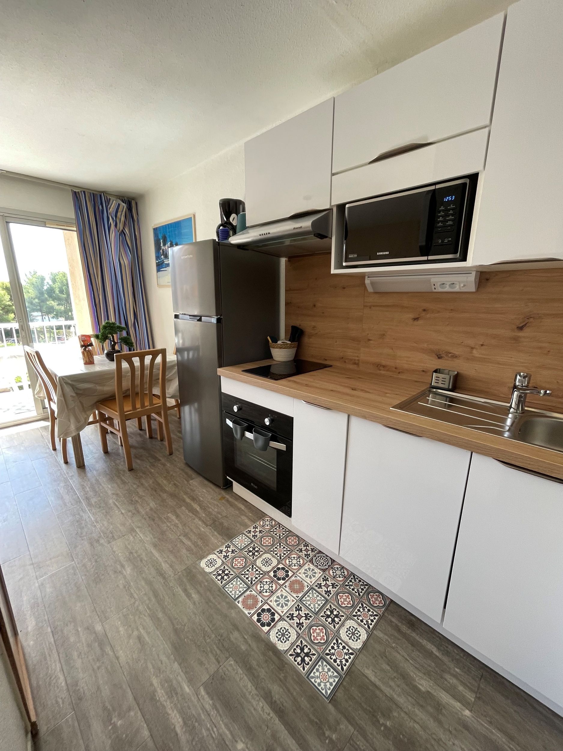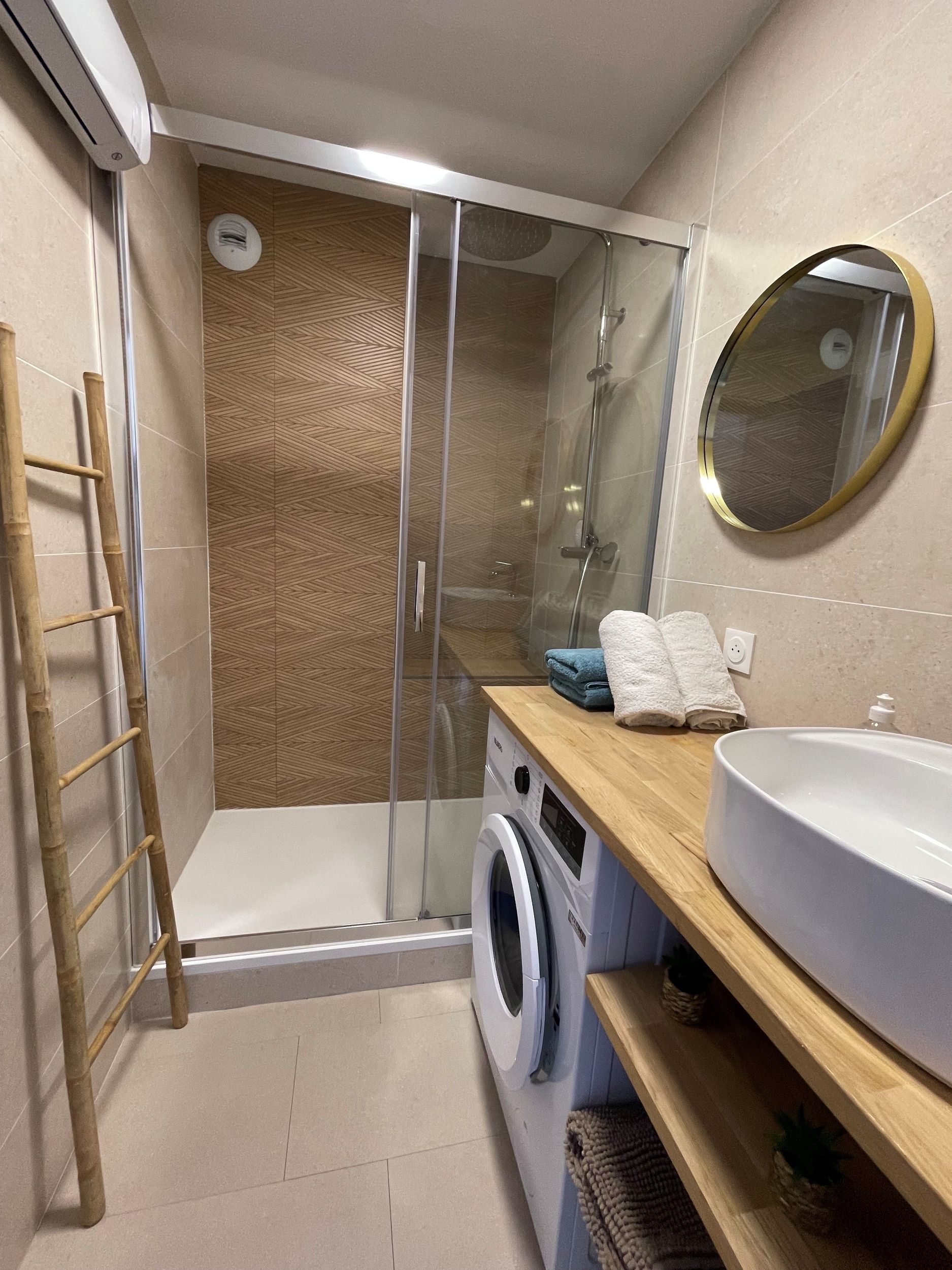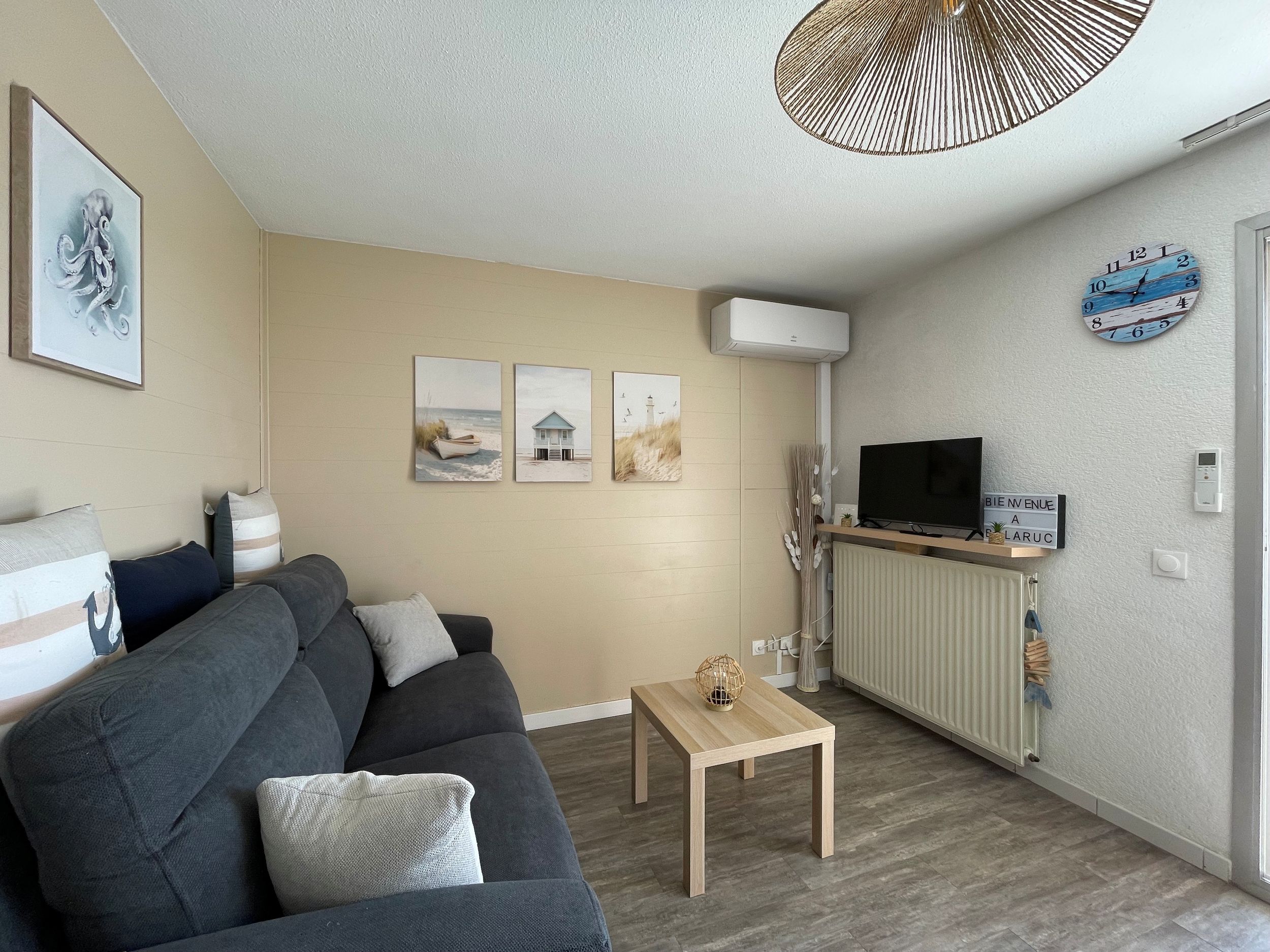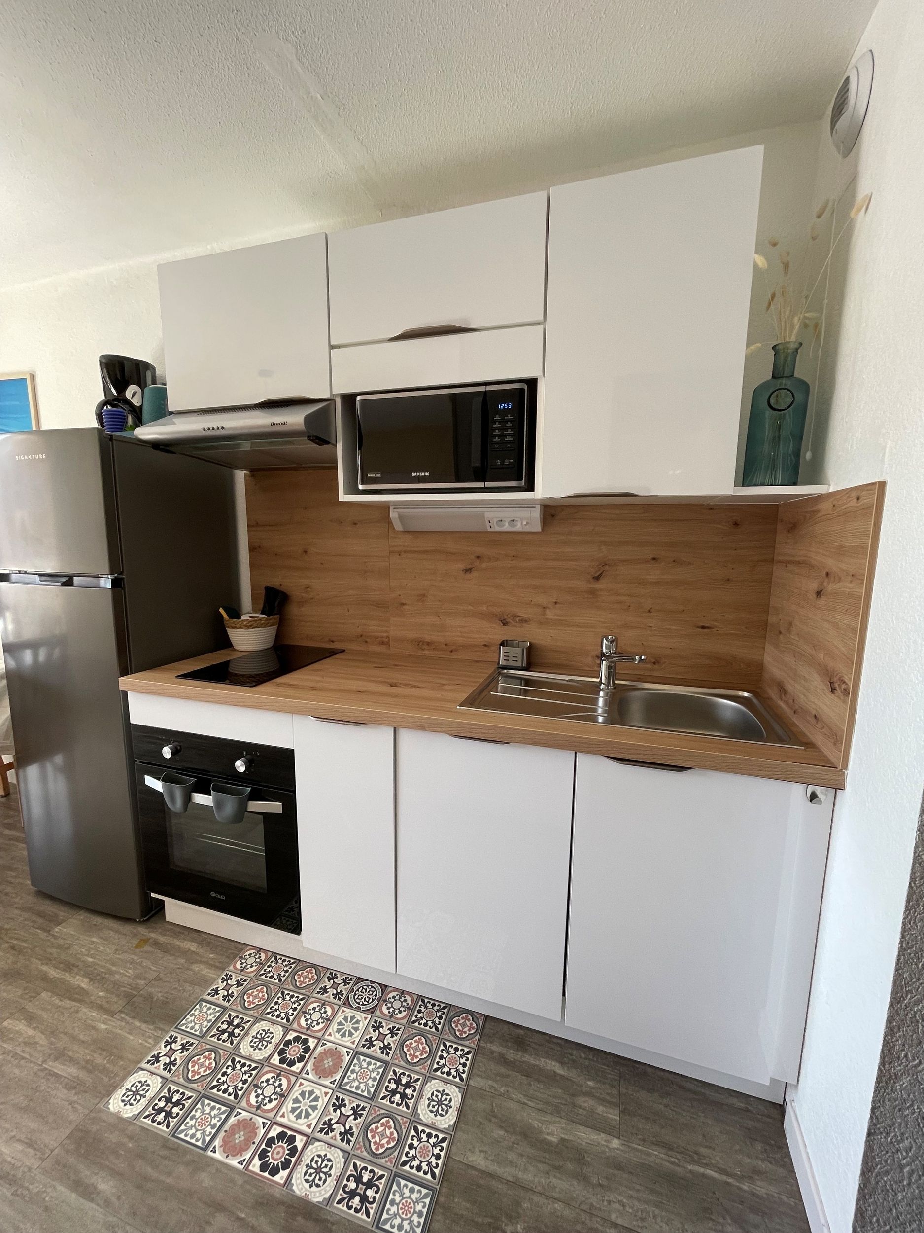 Appartement climatisé classé 2 étoiles – Tout confort avec terrasse et piscine Venez profiter d’un séjour tout confort dans ce charmant T2 de 28 m², classé 2 étoiles, idéal pour 2 à 4 personnes. Situé dans une résidence sécurisée avec piscine, terrain de boules et local à vélos (accès par digicode), cet appartement dispose de toutes les commodités pour un séjour agréable. L’appartement climatisé comprend : • Une chambre séparée avec rangement. • Une salle de bain moderne avec douche à l’italienne et machine à laver. • Des toilettes séparées. • Une cuisine entièrement équipée : four, micro-ondes, lave-vaisselle, réfrigérateur-congélateur, machine à café filtre et Nespresso, bouilloire, grille-pain. • Un salon avec coin repas et canapé convertible. • Wifi gratuit. Côté extérieur : Profitez d’une terrasse de 8 m² avec coin repas et deux transats pour des moments de détente au soleil. Atouts supplémentaires : • Place de parking privée dans la résidence. • Piscine, terrain de boules et local à vélos à disposition. • Arrêt de bus pour les curistes à proximité de la résidence.