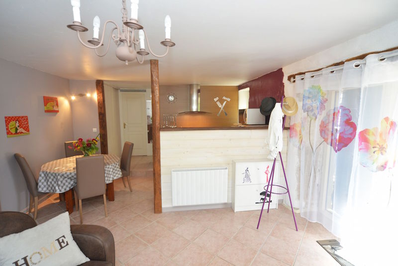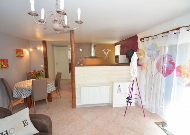 Séjour salon avec coin cuisine. Canapé convertible. Poêle à l’éthanol pour les soirées fraiches. 1 chambre romantique avec lit fait à la demande. Une salle de bain avec linge de toilette fournit à la demande. Possibilité de récupération de vos courses au Drive. Ménage sur demande en fin de séjour.