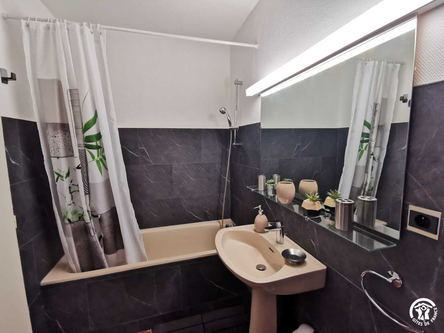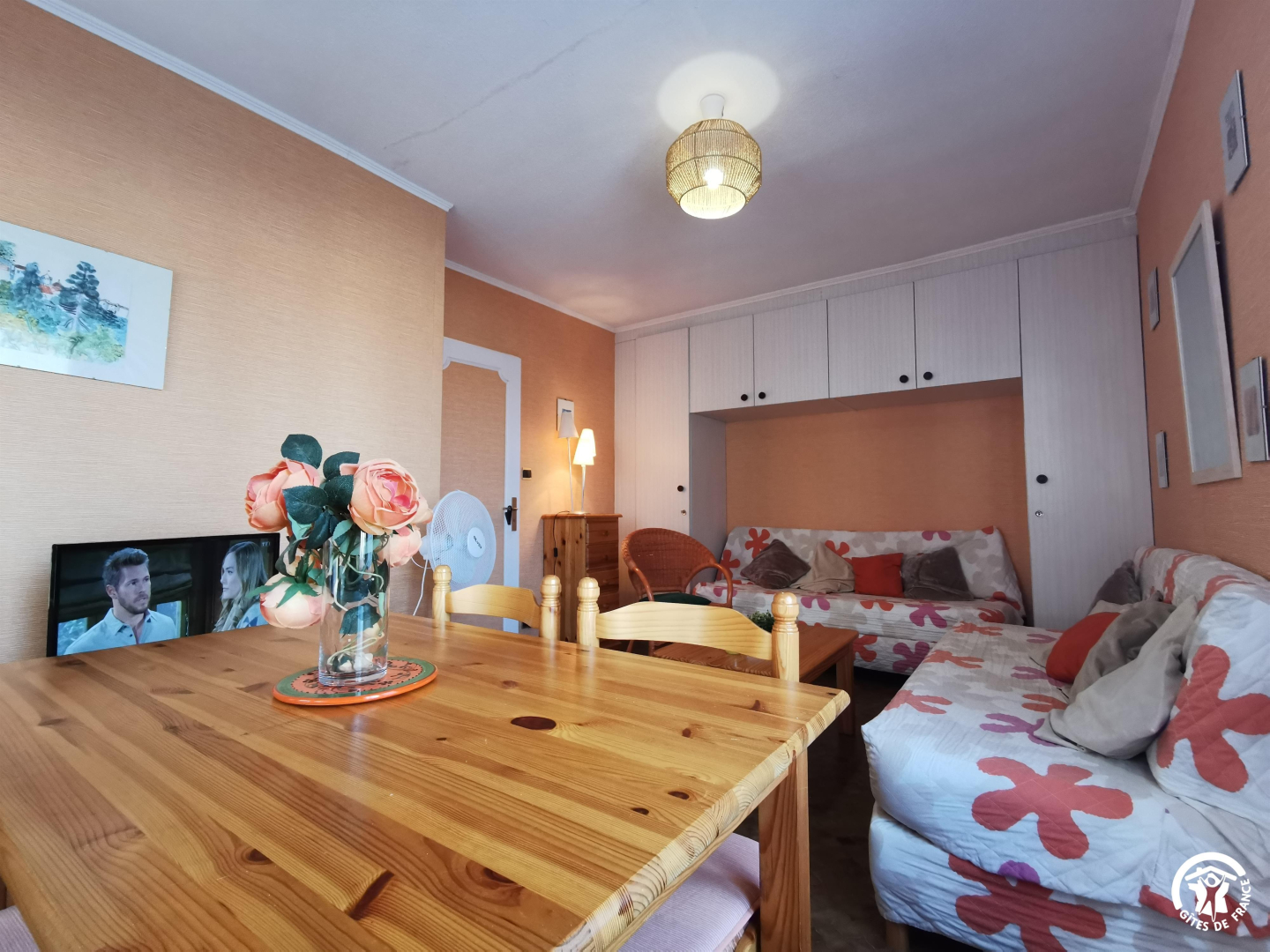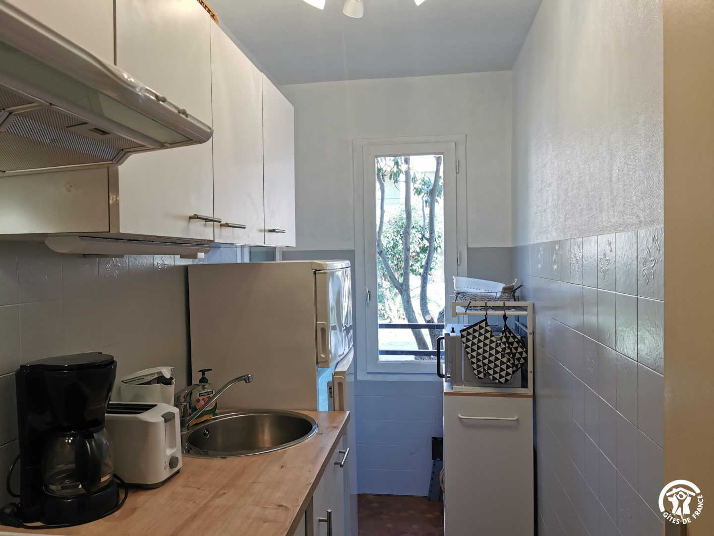 Au second plan, le Massif des Albères vient plonger dans la Méditerranée. Vous serez à 5 min à pied de la plage située à environ 200 mètres. et des commerces. Appartement au rez-de-chaussée d’une résidence avec gardien qui comprend : – Cuisine séparée et équipée – Salle à manger – Pièce à vivre: 2 lits simples en 80×190 – Chambre: 1 lit 140×190 – Salle de bain avec WC – Terrasse Dans la résidence, salle de jeux commune avec baby foot et connexion wifi. Parking privatif dans la résidence. Piscine commune dans la résidence.