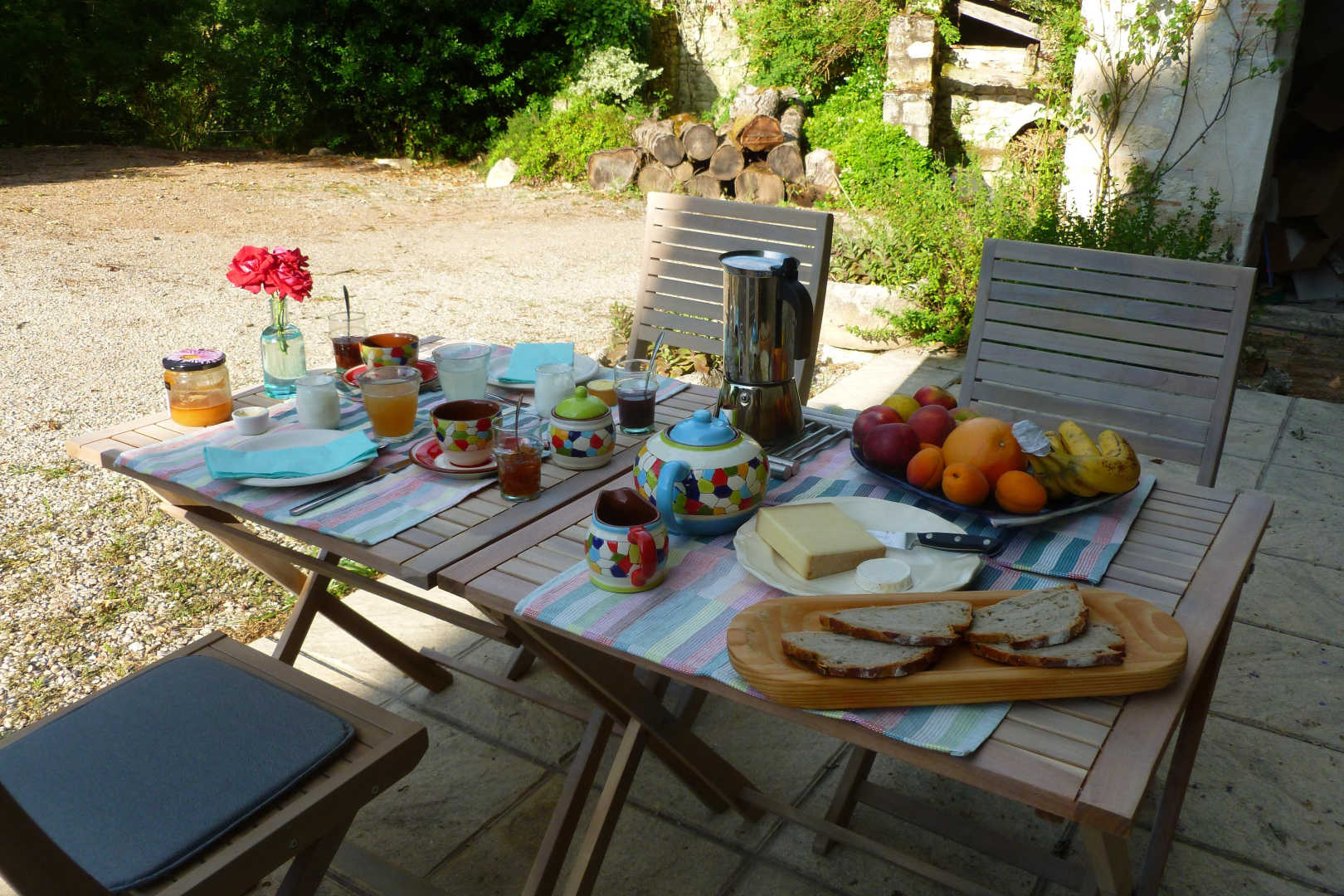 Le petit-déjeuner vous sera servi à l’intérieur ou à l’extérieur selon votre préférence, et selon la météo. Le pain au levain est maison (ou du boulanger du coin), les gateaux et confitures également, et le miel est d’ici. Pour ceux qui le souhaitent, vos hôtes pourront vous proposer des oeufs au petit-déjeuner.