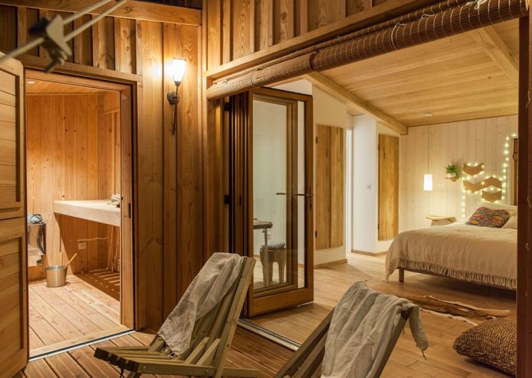 Séjour romantique pour deux dans une cabane avec spa et sauna privatif