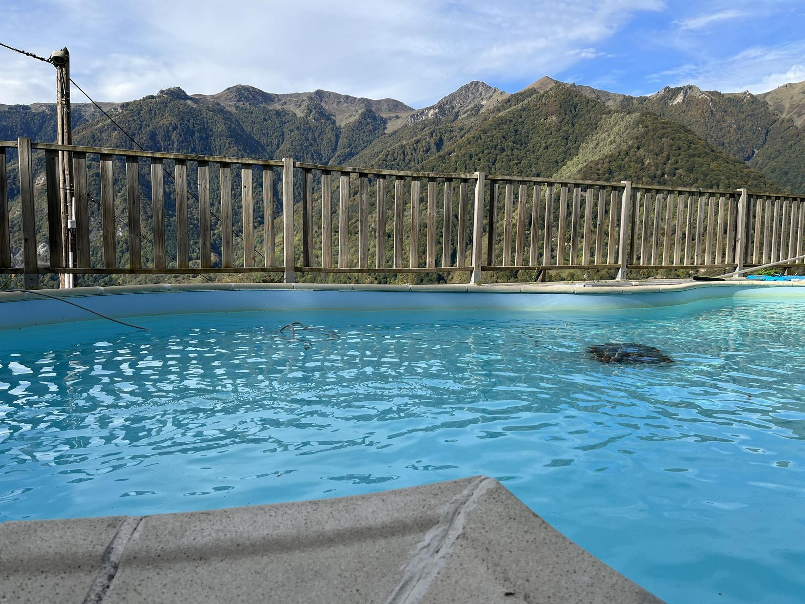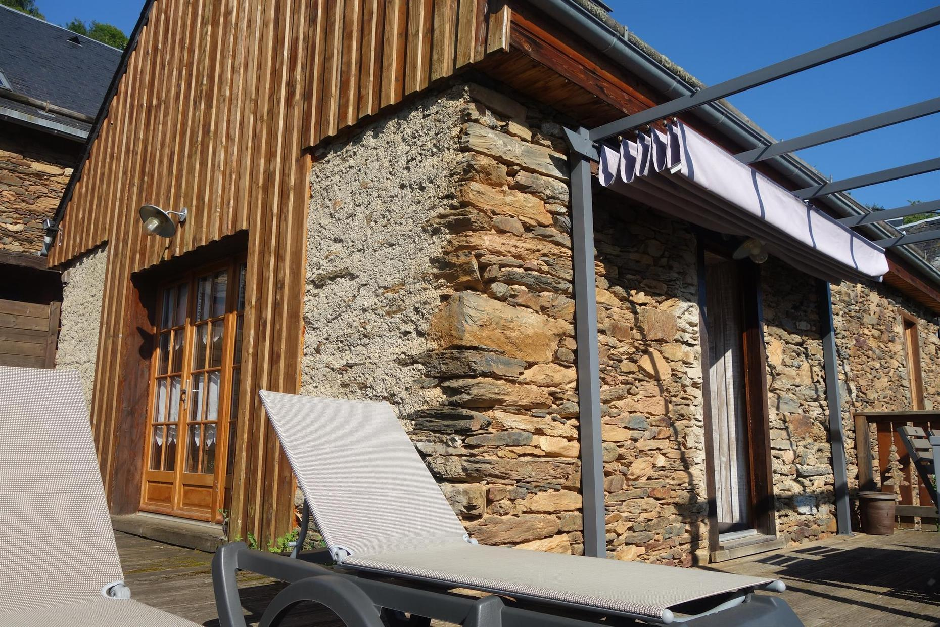 Belle façade en pierre des Pyrénées. Piscine chauffée en été en commun