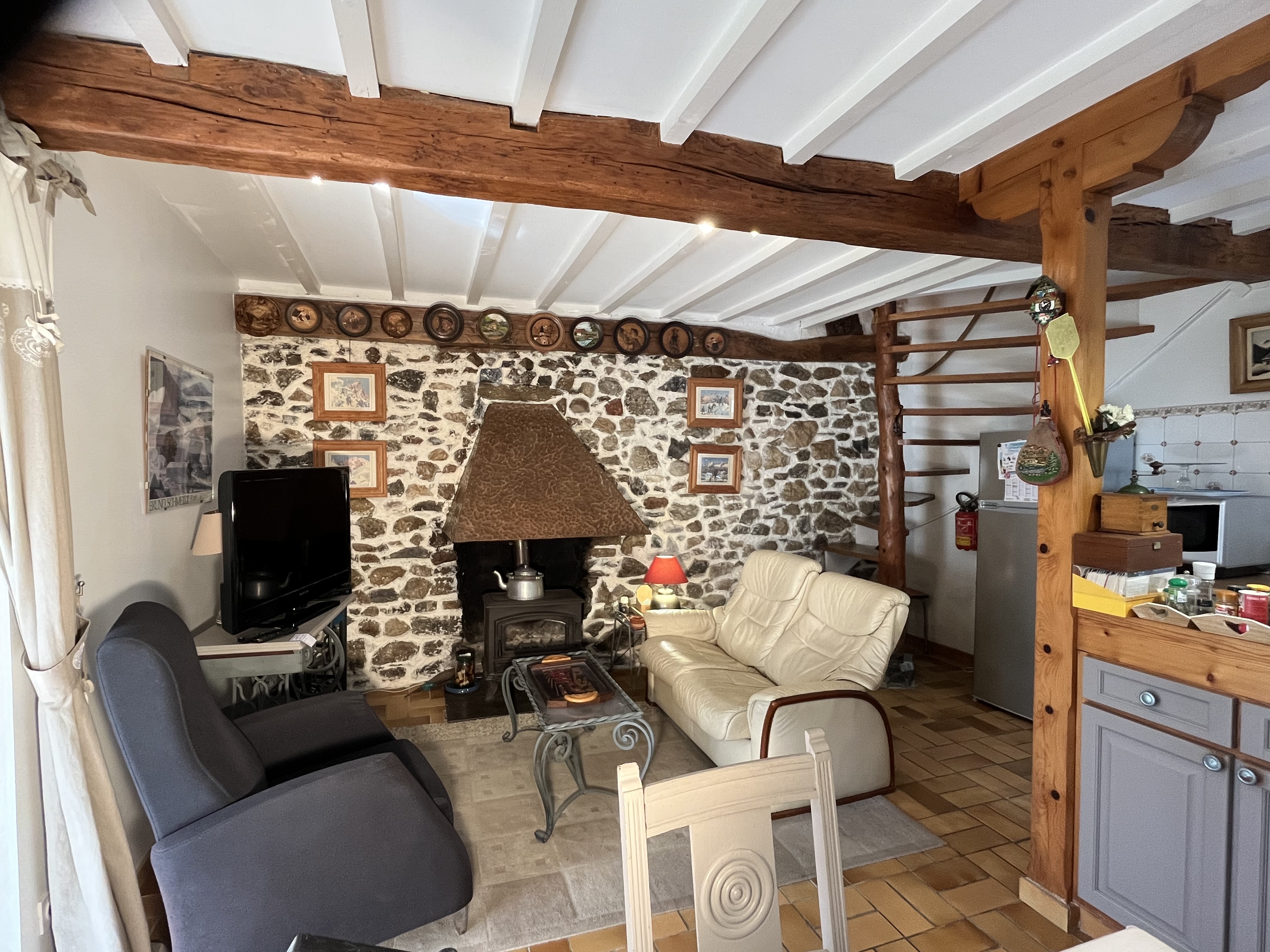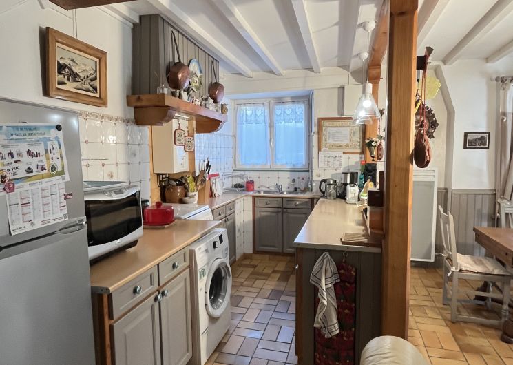 Deux chambres avec 1 lit en 140 et 2 lits en 90, cuisine ouverte sur séjour, poêle à bois. Salle d’eau toute en lambris avec grande douche. Lave-linge, grand combiné réfrigérateur/congélateur, gazinière et lave-vaisselle neufs, plancha, fibre optique.