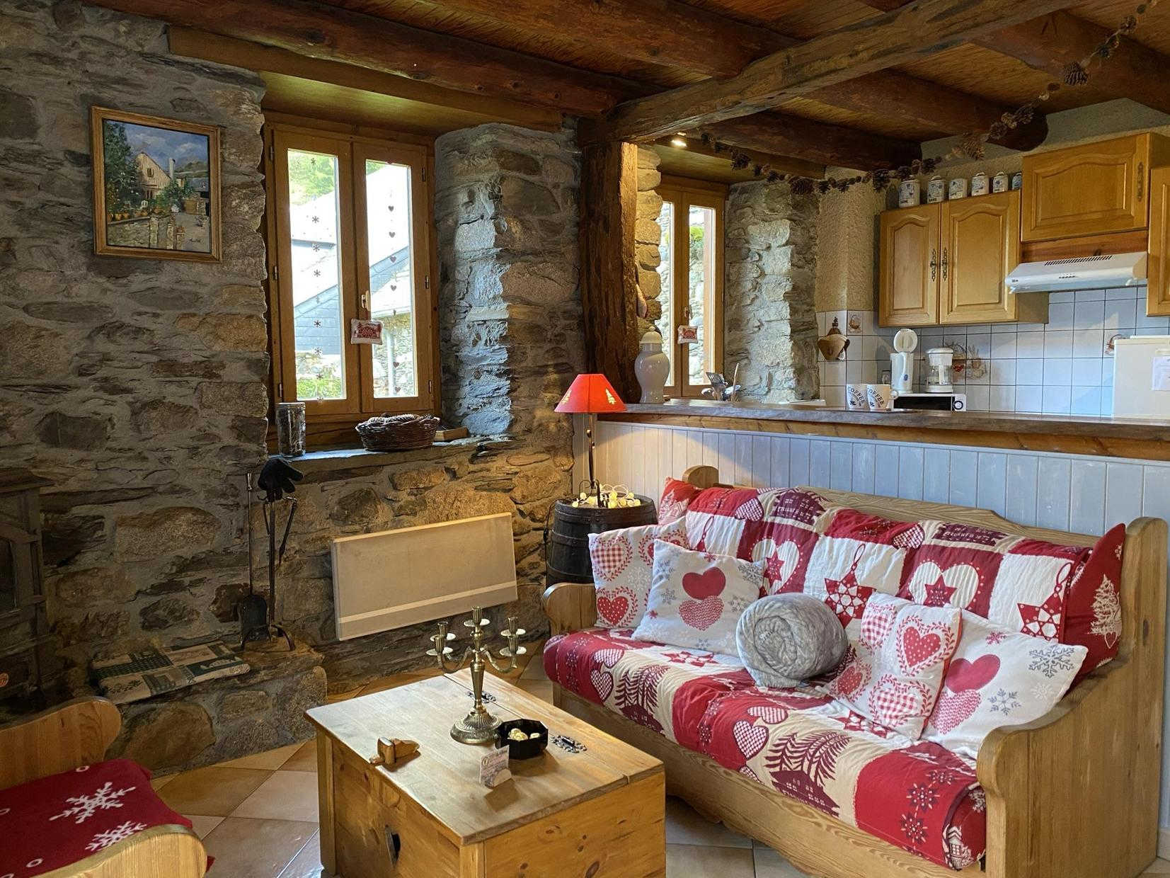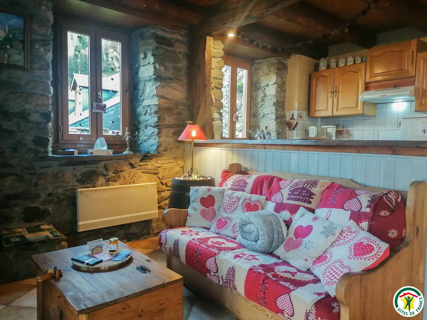 A l’entrée du village, grange typique de montagne en pierres, bois, ardoises, aménagée en gîte rural indépendant.