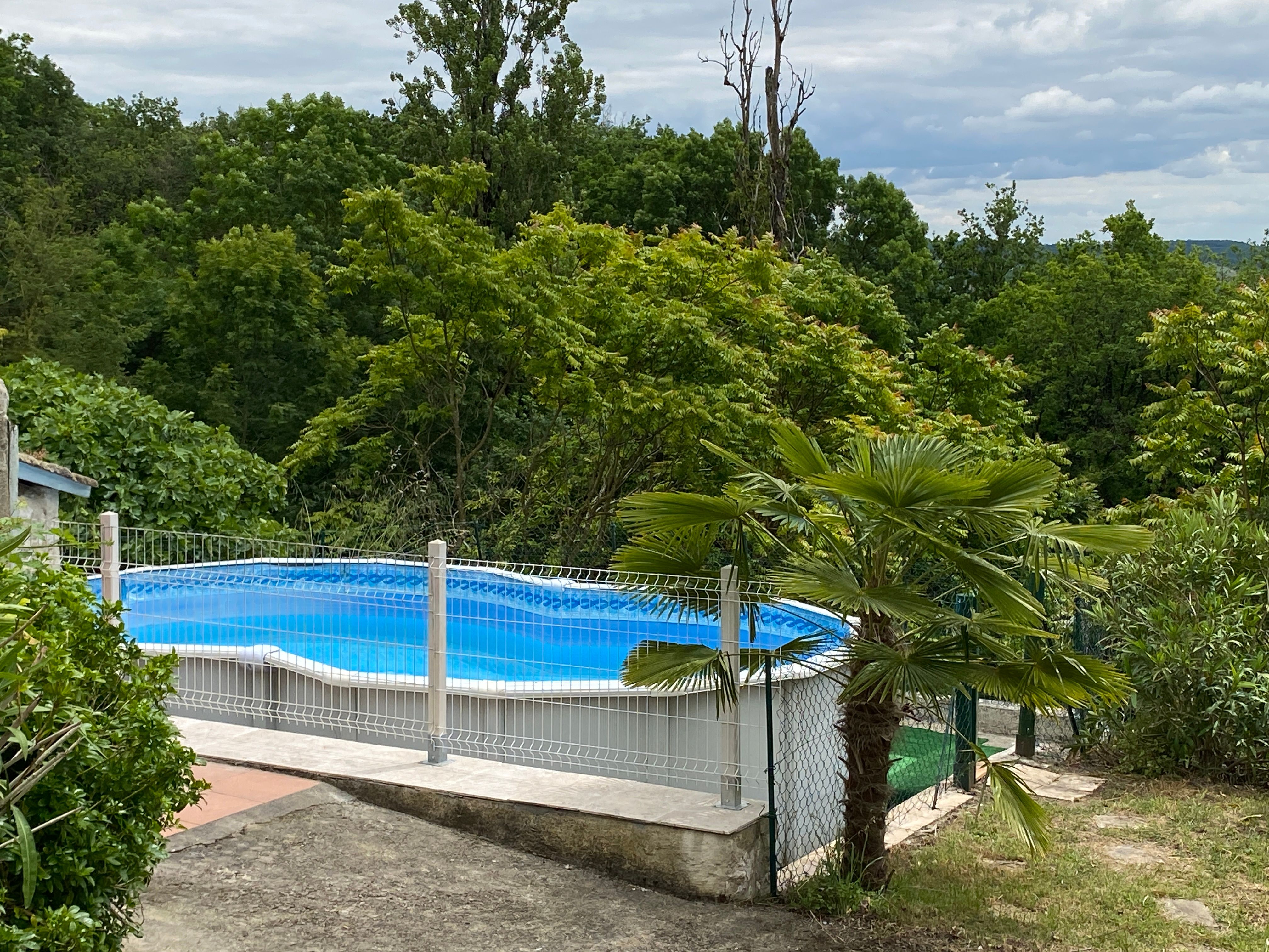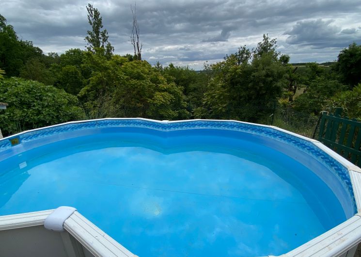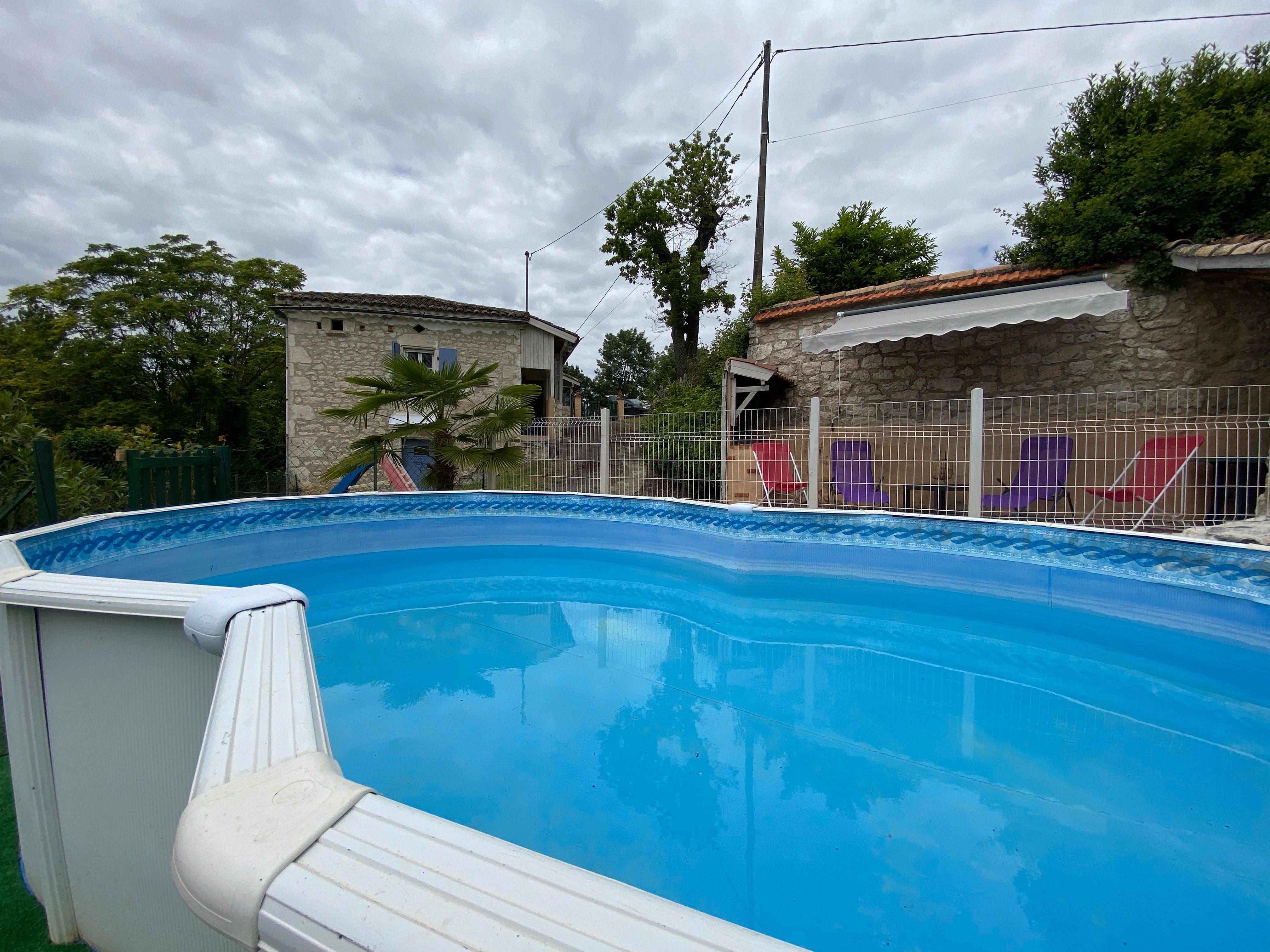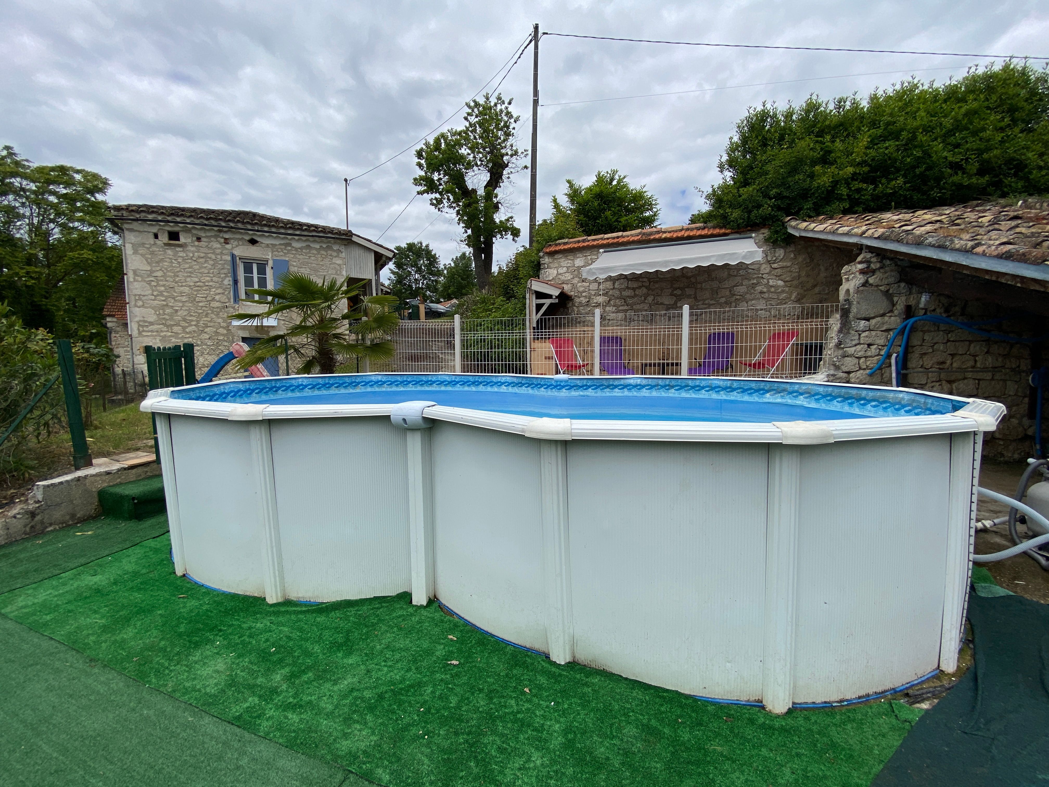 Une piscine hors-sol ,privative et sans vis à vis, avec sa terrasse barbecue, transats ,et salon de jardin, clôturé,