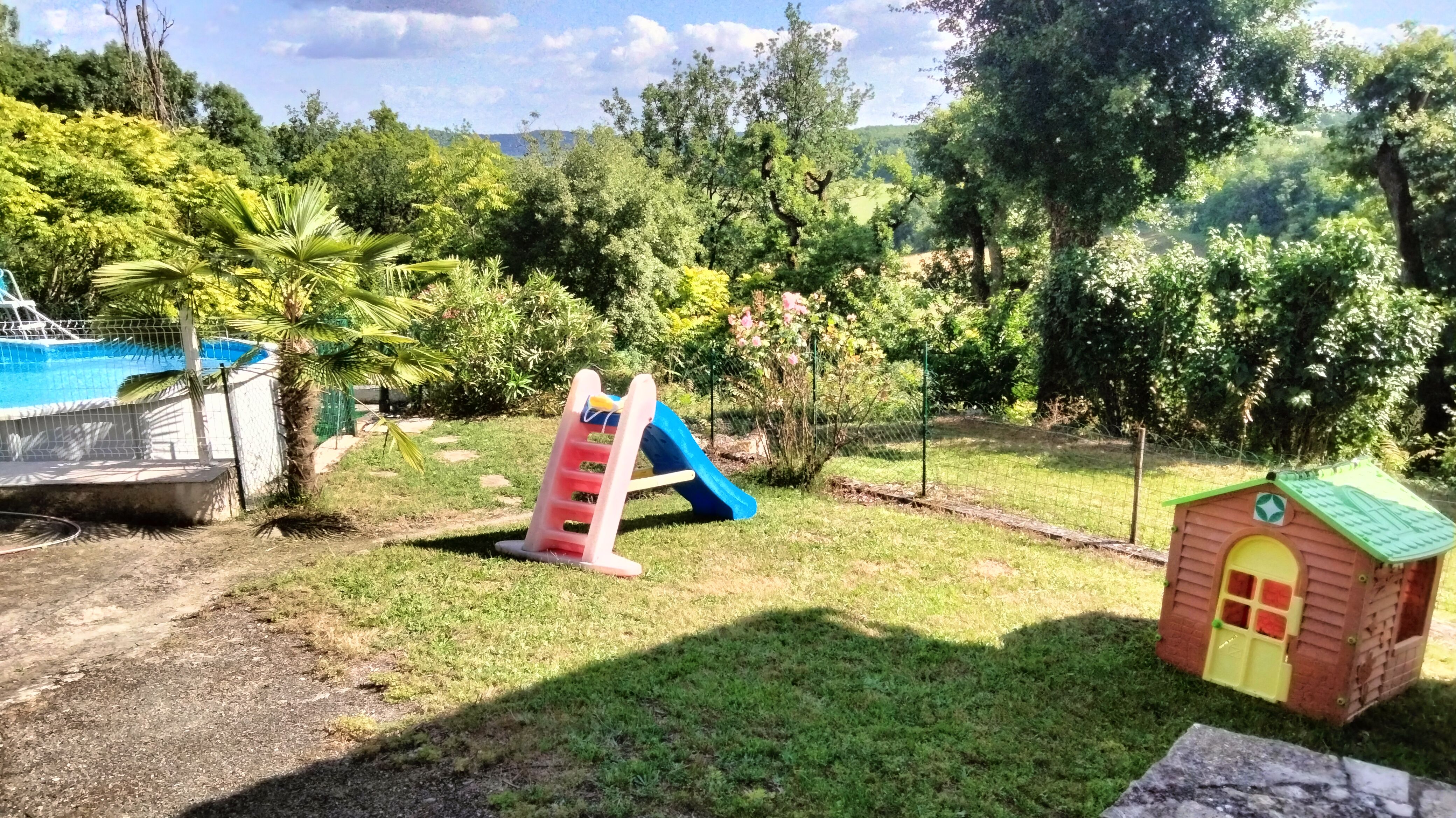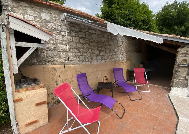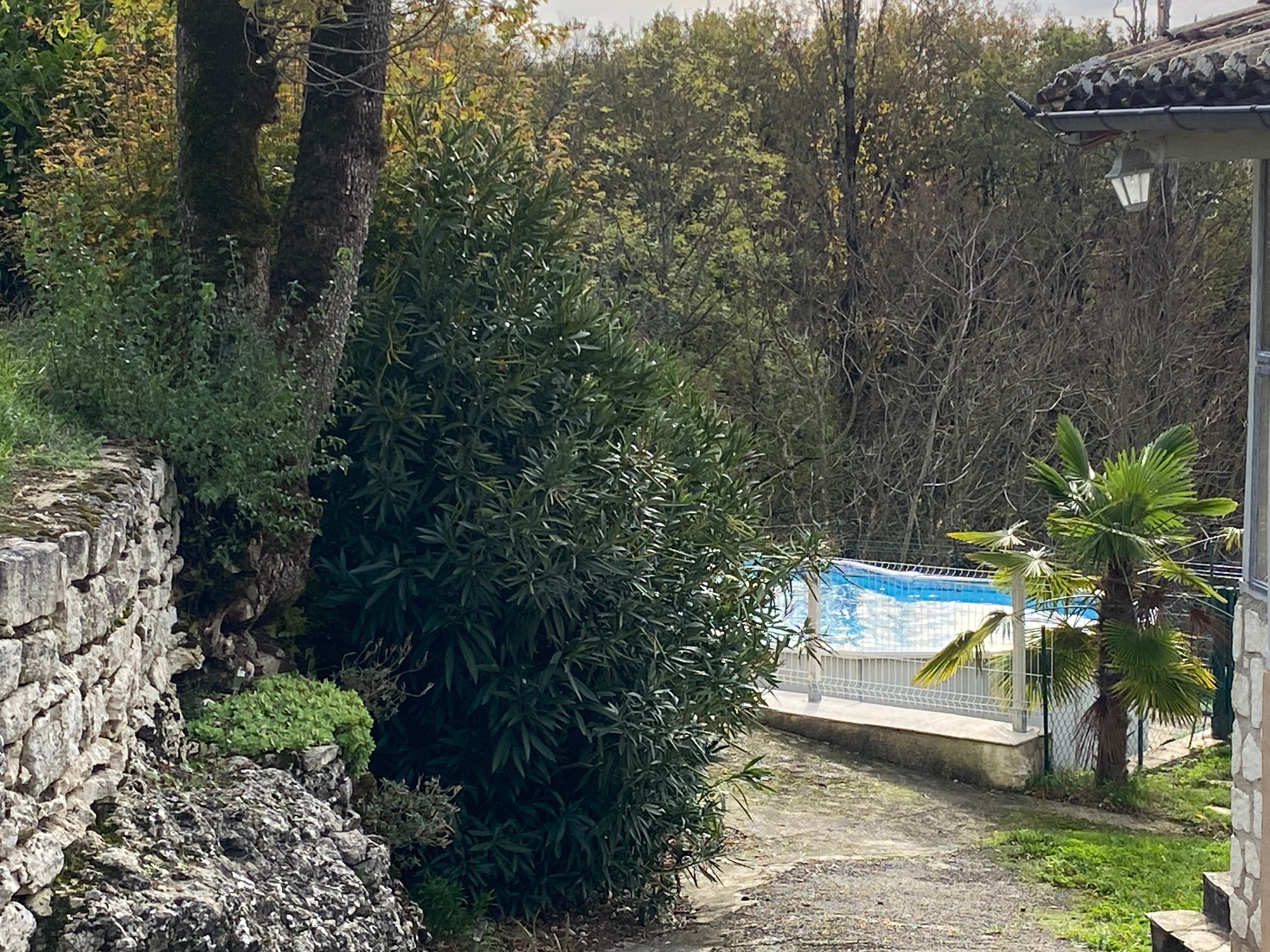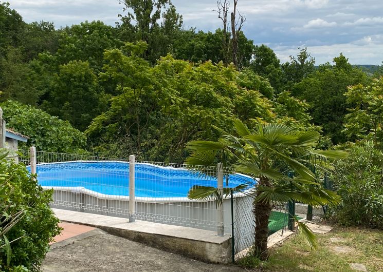 Une piscine hors-sol ,privative et sans vis à vis, avec sa terrasse barbecue, transats ,et salon de jardin, clôturé,