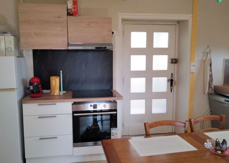 – un espace cuisine (four, four micro-ondes, réfrigérateur, congélateur, lave-vaisselle), table chaises.