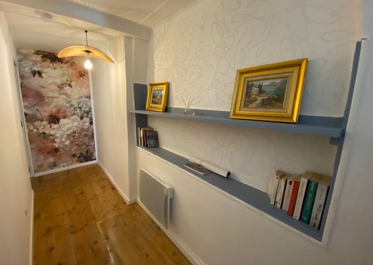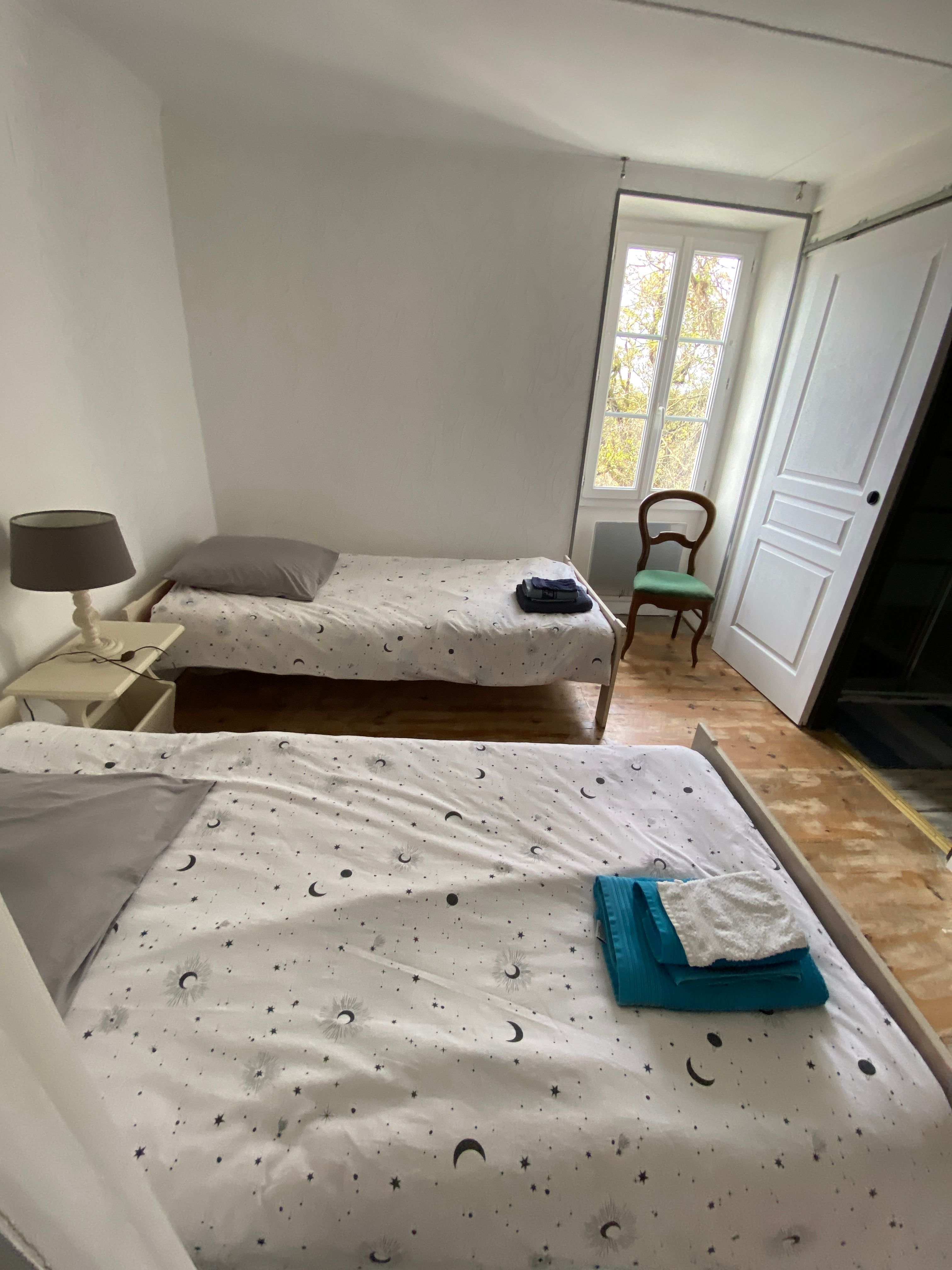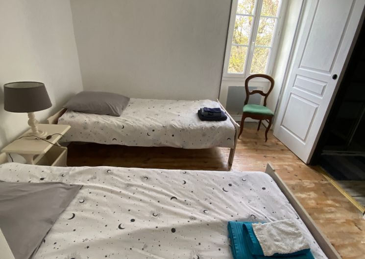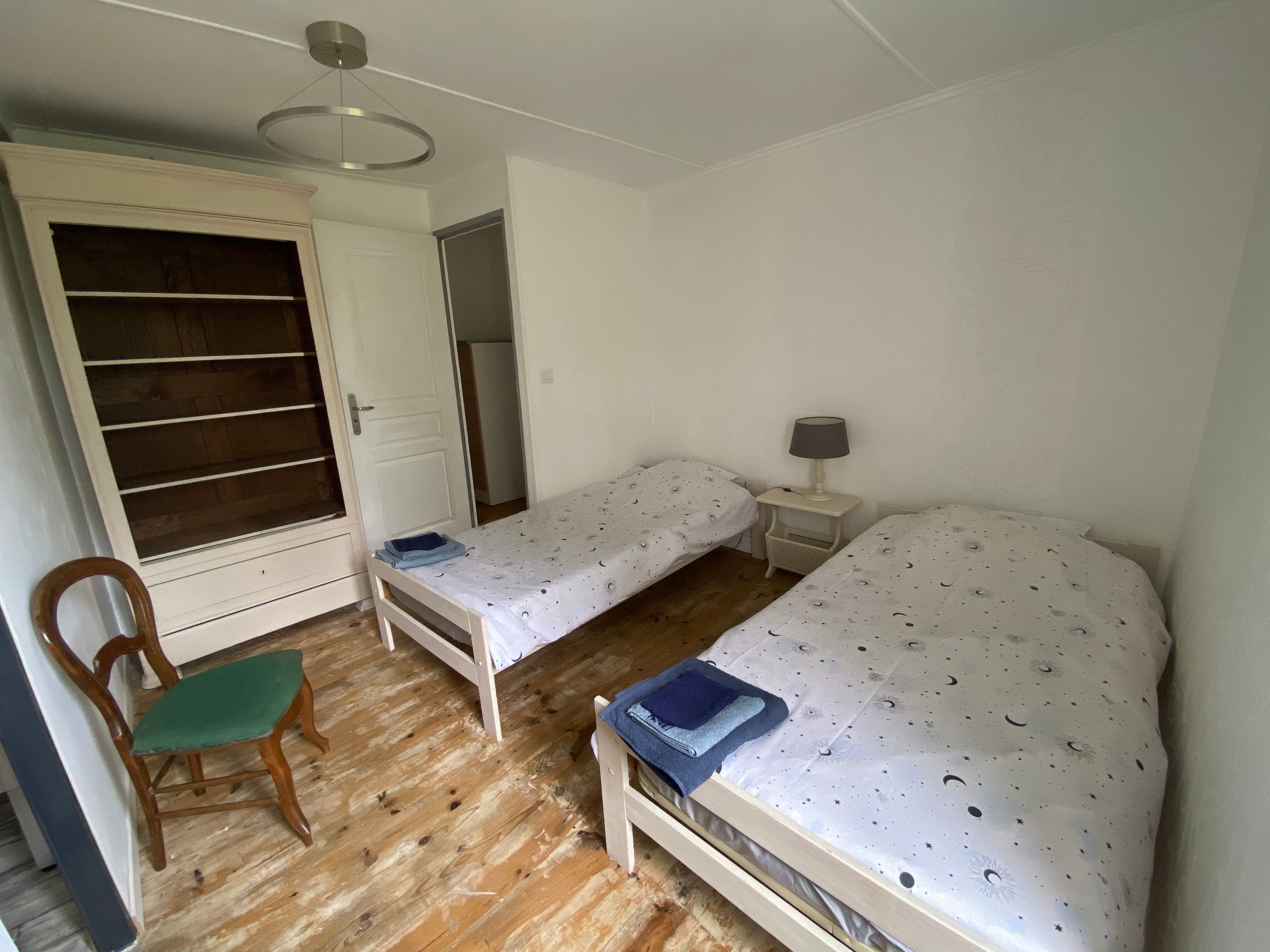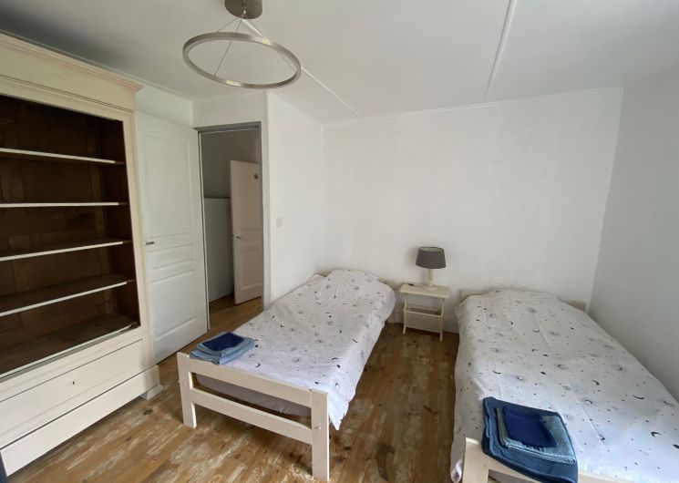Un couloir dessert deux chambres : une chambre avec 2 lits 0,90 et une chambre avec 1 lit 160.