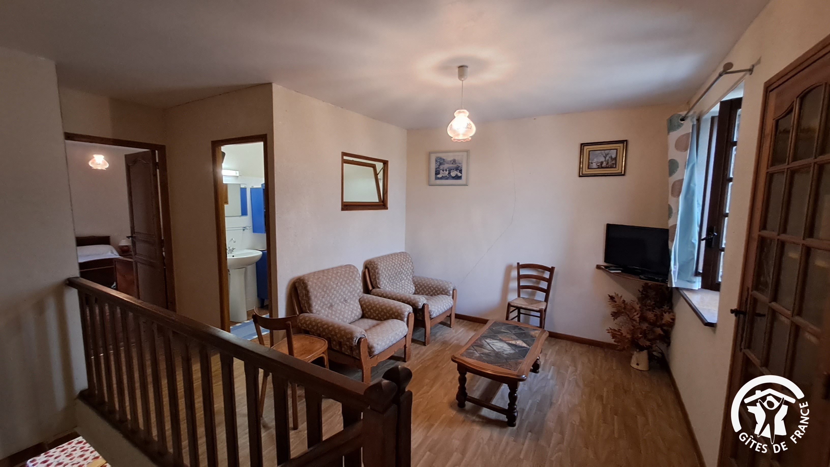 Maison spacieuse redivisée pour accueillir 4 pers. Gîte à l’étage, accès par un escalier extérieur donnant sur la terrasse.