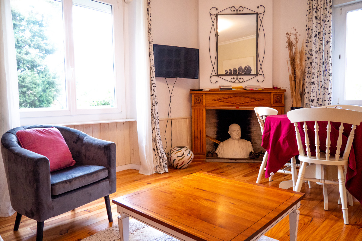 Dans un petit domaine accueillant gîtes et chambres d’hôtes, cette maison indépendante dispose d’une terrasse et d’un terrain privatif. Les pièces sont lumineuses grâce aux tons et aux bois clairs utilisés. Le rez-de-chaussée se compose d’un salon avec coin repas, d’une cuisine équipée, avec une petite buanderie. A l’étage, on trouve, une salle d’eau avec wc séparé, une chambre avec un lit 2 personnes, et une petite chambre avec deux lits superposés. La maison dispose du chauffage central au gaz, d’un salon de jardin et d’un barbecue. Salle de jeux, piscine, jacuzzi, sont communs avec la maison d’hôtes et un autre gite. Location de draps, de linge de toilette, et service de ménage sont disponibles sur demande.