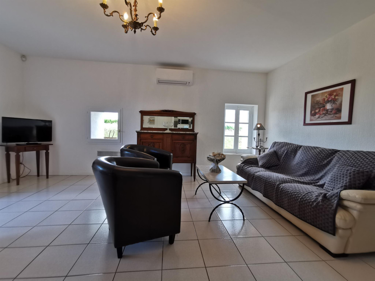 Coin-cuisine dans salle de séjour, chambre 1 (1 lit 2 pers. en 160×200 cm), chambre 2 (2 lits 1 pers. 90×190 cm), salle d’eau/wc. Chauffage électrique inclus, TV, lits faits, possibilité ménage fin de séjour. Espace extérieur : terrain clos (300 m²), salon de jardin, barbecue, parking. Superficie de l’hébergement : 60 m². ATTRAITS TOURISTIQUES : Pézenas (ville d’art où séjourna Molière), Servian (village médiéval, église fortifiée du XIIème, Jardin St Adrien élu Jardin préféré des Français en 2013), Espondeilhan (Notre Dame des Pins XIème), Villeneuvette (manufacture royale), le Cirque de Mourèze, Agde (cité phocéenne), Marseillan.