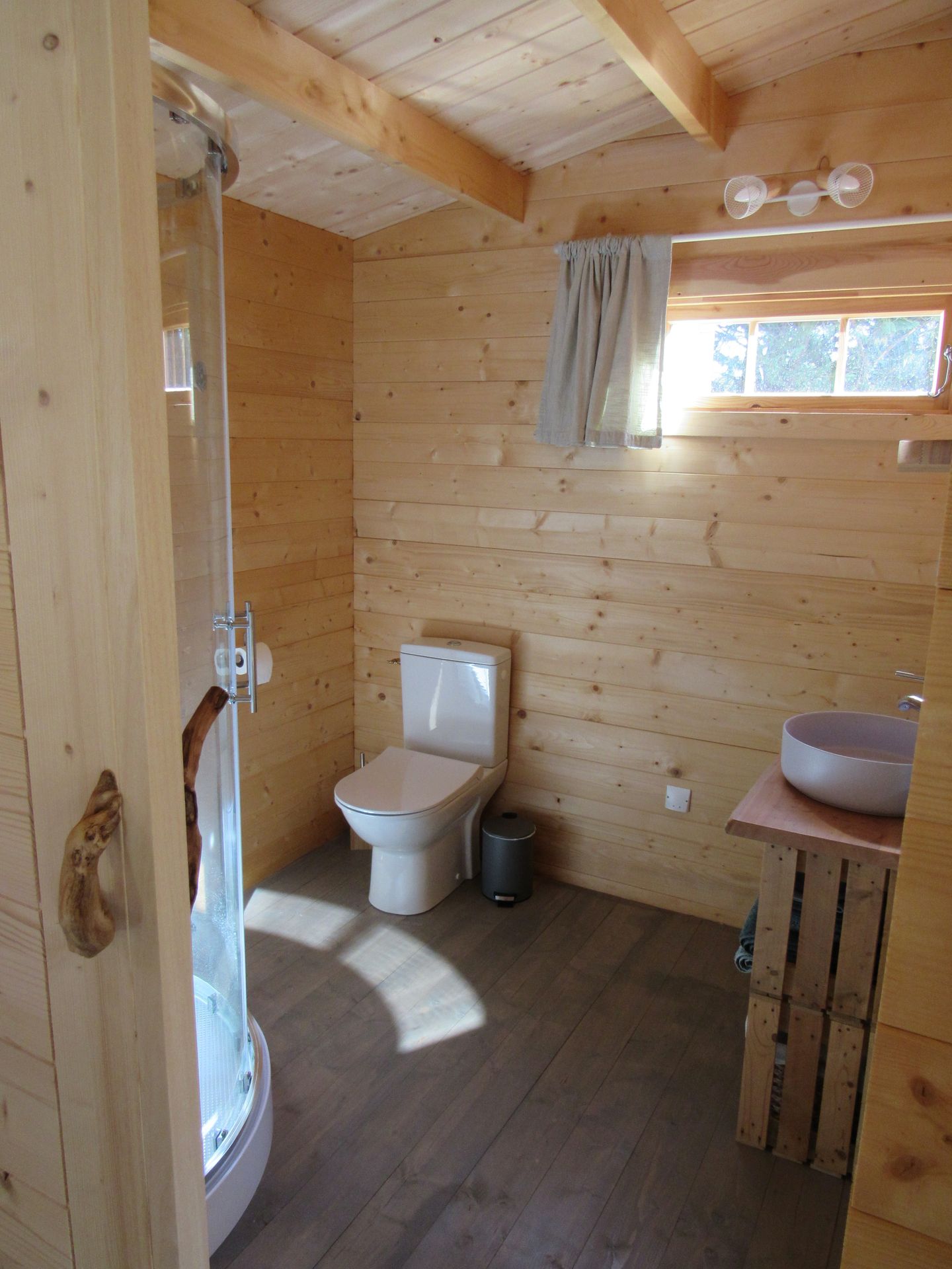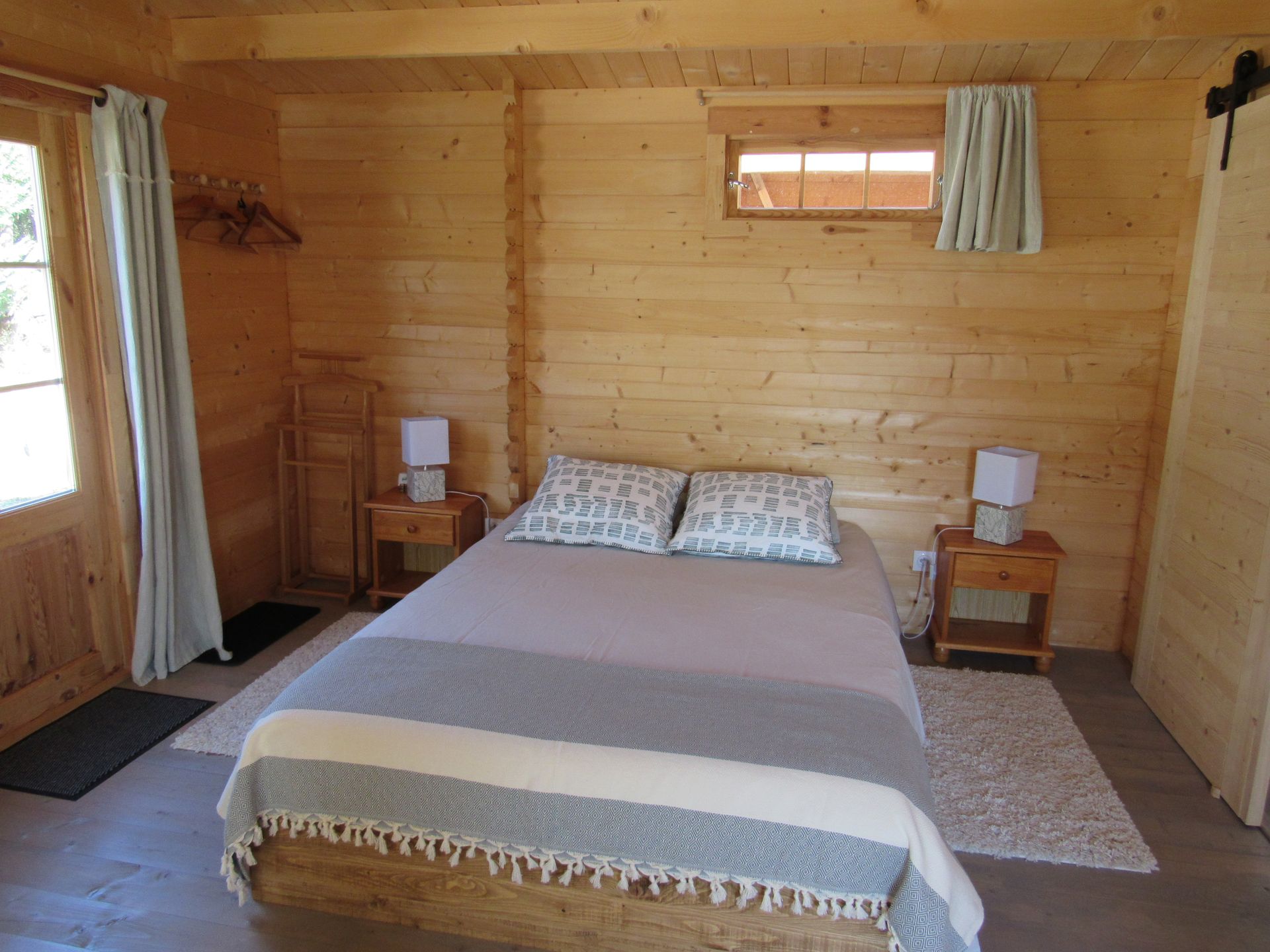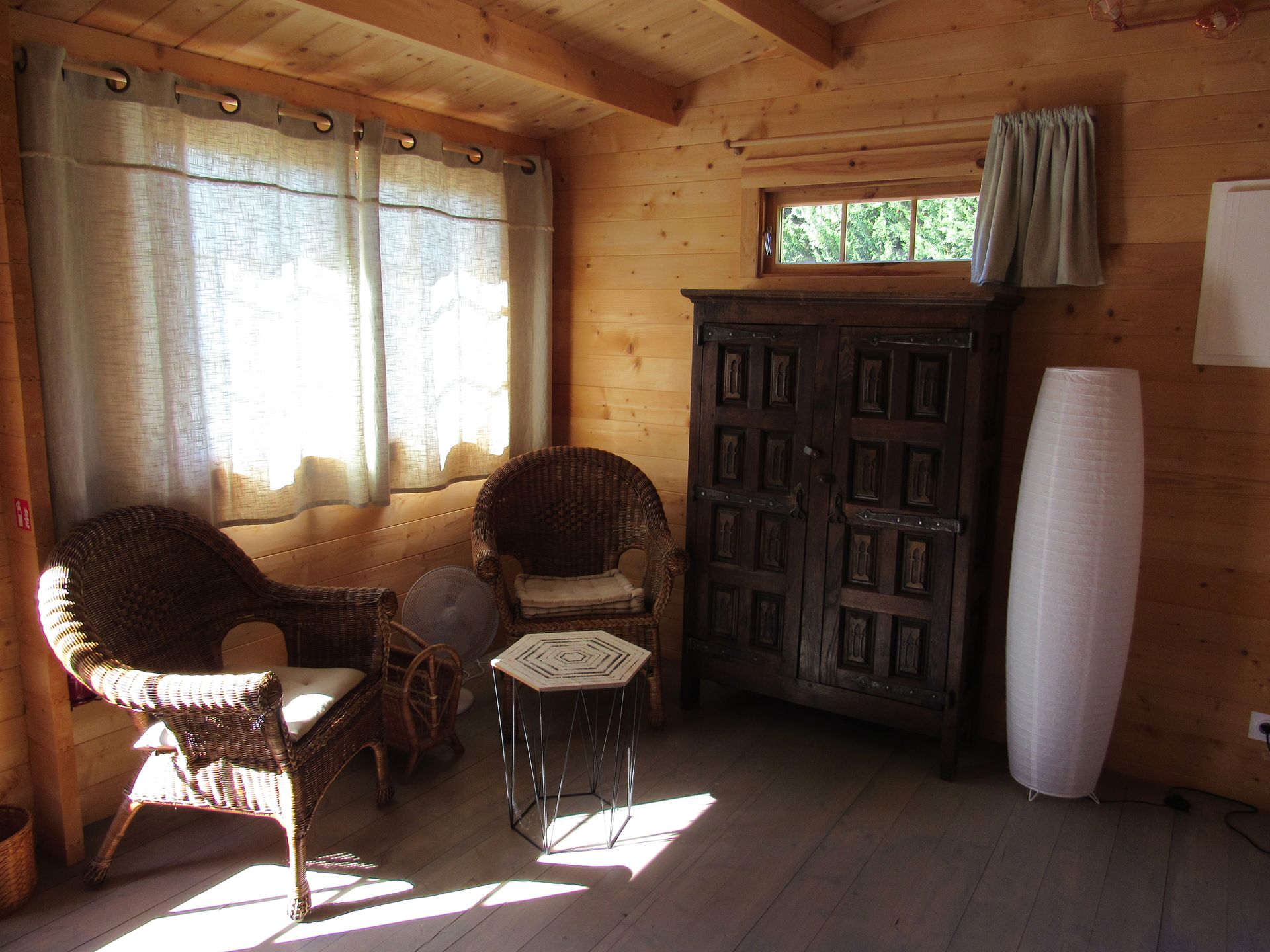 Petite maison insolite en bois massif sur le domaine Pierres de Soleil, 2 ha de parc et prairie en bordure de forêt avec un étang de baignade naturelle.