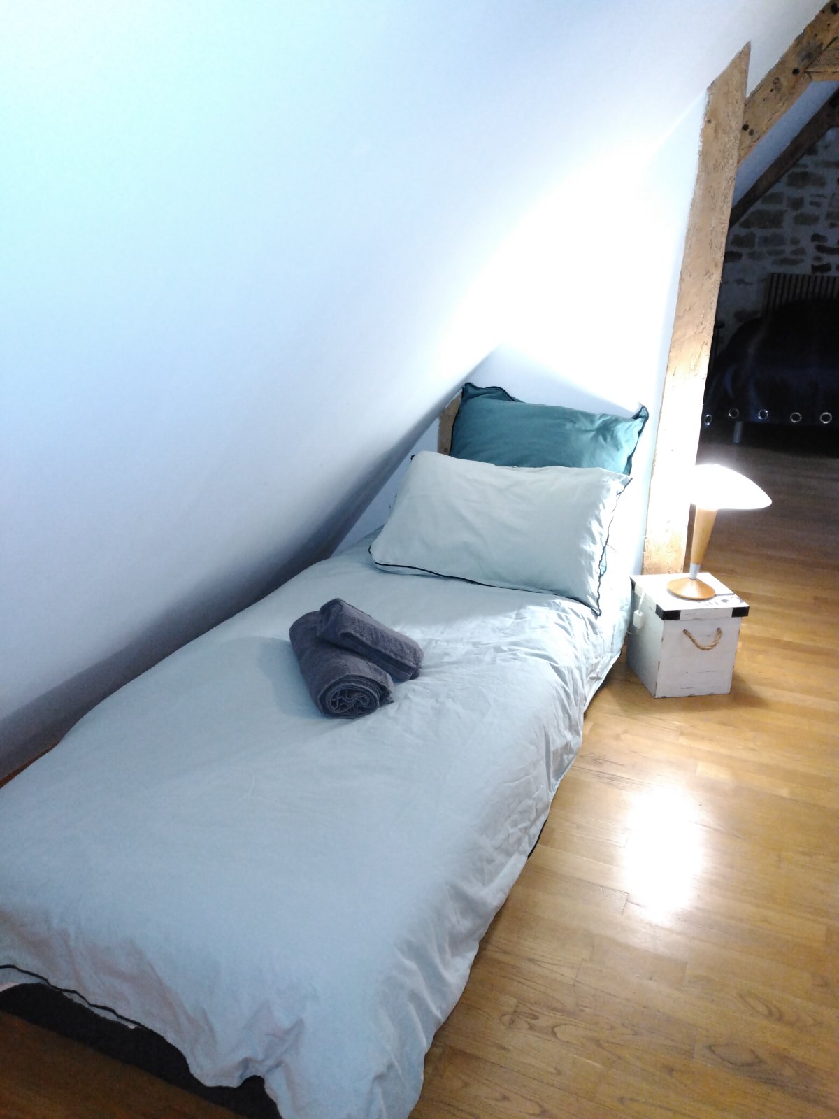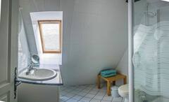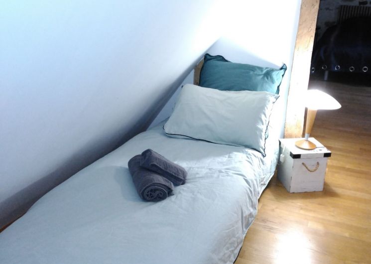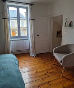 Au premier niveau un espace ouvert où vous trouverez une belle cheminée ainsi qu’ une télévision écran plat. À demi-niveau, découvrez une chambre parentale avec un lit 160 et une salle de bain attenante, un dressing ainsi qu’un espace bureau idéal pour le télétravail. (wifi et smart TV) À l’étage supérieur, laissez-vous séduire par une chambre sous les toits, dotée de lits jumeaux 90×200, d’un dressing, d’un lit 80×190 ainsi que d’une salle de bain. Toilettes et climatisation réversible à chaque étage pour un confort optimal. Une place de parking privée le long de la maison est disponible pour votre tranquillité d’esprit. Les draps et serviettes de toilette sont fournis pour un séjour de détente.