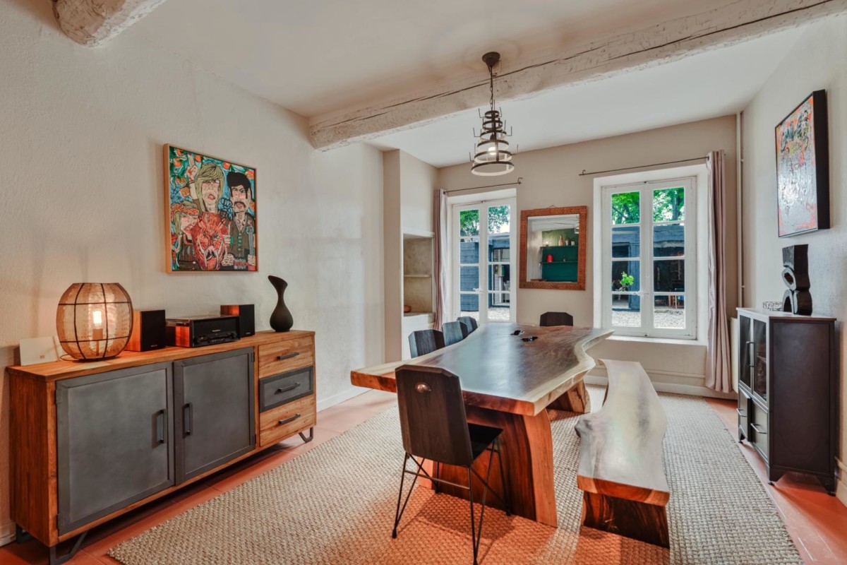Blotti entre vignes et collines, Floure est un écrin de quiétude en terre d’Occitanie, à deux pas de la majestueuse cité de Carcassonne. Son château, ancienne demeure de l’écrivain Gaston Bonheur, mêle élégance et mémoire littéraire. Les sentiers qui partent de Floure serpentent à travers la garrigue, entre oliviers et lavande sauvage, offrant des panoramas à couper le souffle, depuis l’Alaric. Le Canal du Midi tout proche invite à la flânerie, à pied ou à vélo (8 VTT à disposition), sous l’ombre protectrice des platanes centenaires. Les châteaux cathares, racontent les légendes oubliées d’un pays de feu et de foi. Ici, chaque village est un trésor : Montolieu, bastion du livre, ou Caunes-Minervois et son marbre rouge sang, vibrent d’histoire et d’âme. Les saveurs du terroir se retrouvent dans l’assiette : cassoulet généreux, fromages de caractère, truffes et charcuteries paysannes. Dans les marchés colorés, les accents chantent et les étals débordent de fruits mûrs, d’herbes aromatiques et de miel doré. Les domaines viticoles ouvrent leurs portes avec chaleur pour partager les secrets d’un Corbières puissant ou d’un Minervois soyeux. Au prieuré Saint Louis, vous profiterez d’un grand espace extérieur, privatif et clos, avec une belle cuisine d’été, couverte, ou vous profiterez des belles soirées estivales au bord de la piscine privée (10.50 X4.20m profondeur 1.50m), ou bien en vous défiant au baby-foot. Au rez de chaussée: -une salle à manger. -un salon avec cheminée. -une cuisine toute équipée. -un WC indépendant. -une buanderie. Au 1er étage: -une chambre avec 1 lit en 160 avec Salle de bain et WC. -une chambre avec 1 lit en 160 et 1 lit en 90 avec Salle de bain et WC. -une chambre avec 1 lit en 160 et 1 lit en 90 avec Salle de bain et WC. Au deuxième étage: -une chambre avec 1 lit en 160 et 2 lits en 90 avec Salle de bain et WC. -une chambre avec 1 lit en 160 et 2 lits en 90 avec Salle de bain et WC. Ensemble climatisé. Ici pas de surprise tout est compris!