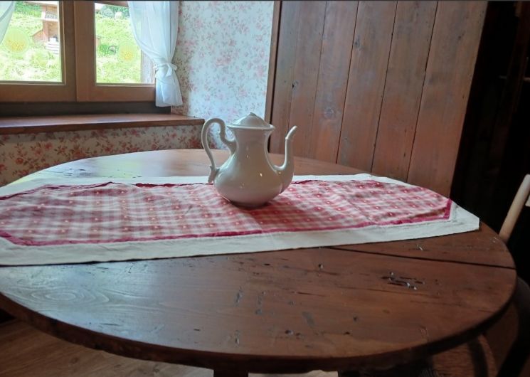 – Un séjour, avec insert, qui rappelle combien les familles étaient nombreuses avant et aimaient se rassembler devant la cheminée.