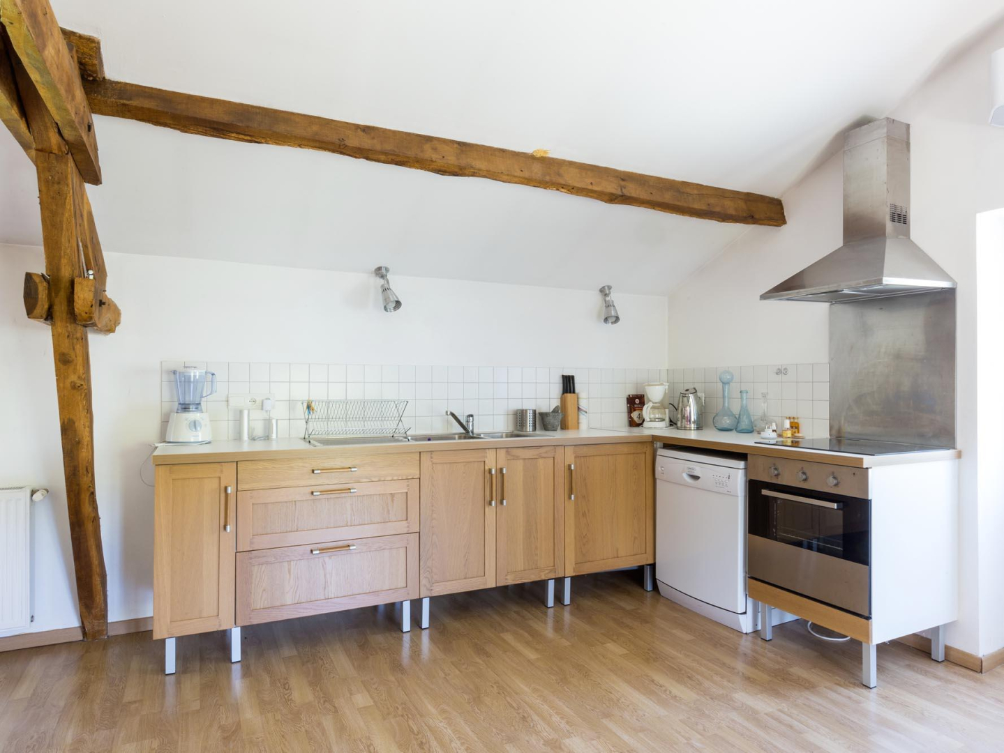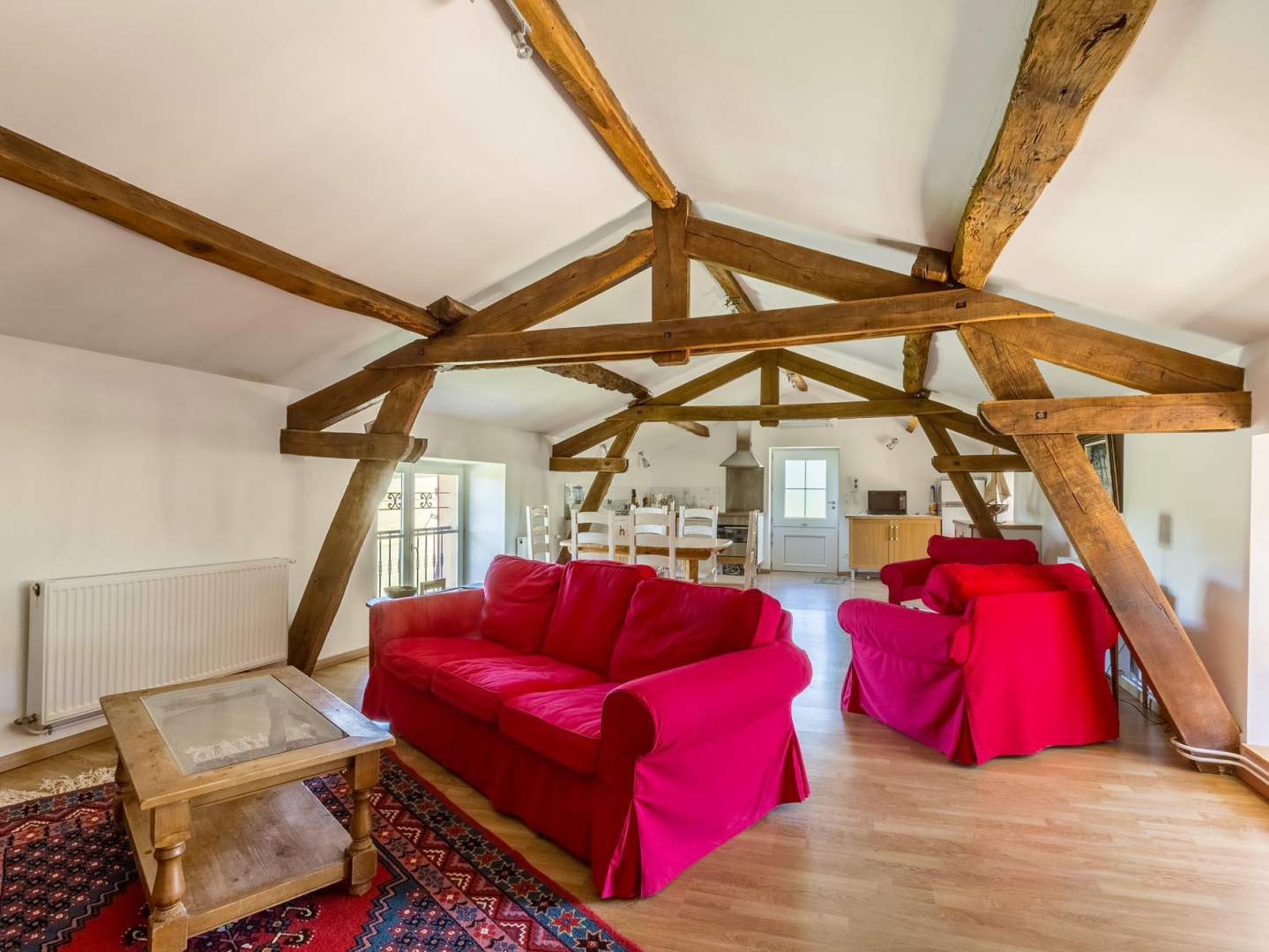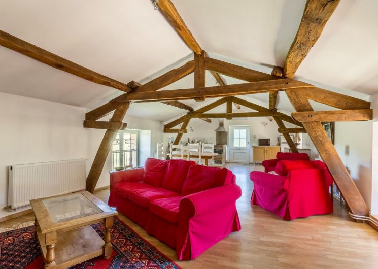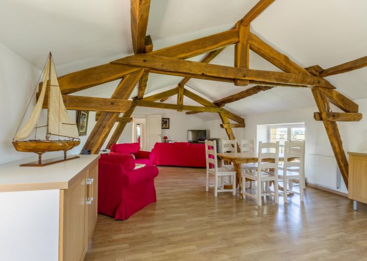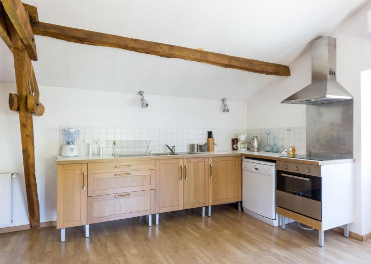 Une cuisine toute équipée et ouverte sur le grand séjour complètent ce gîte pittoresque et confortable.