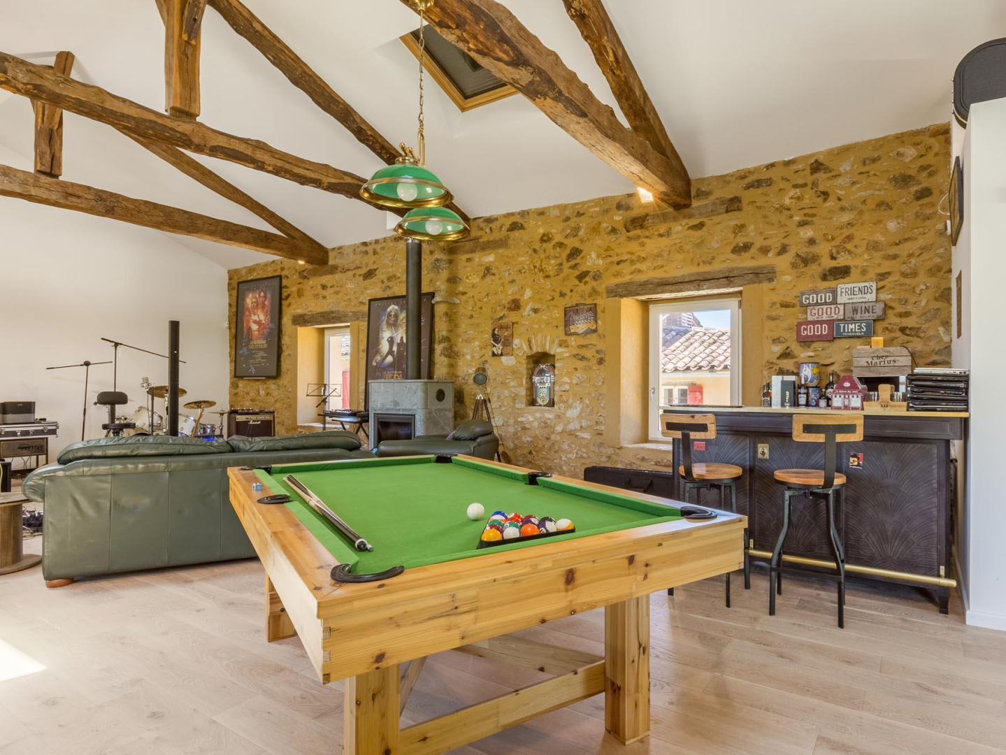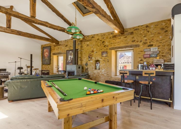 Accueil : Salle avec billard, baby-foot et musique à disposition