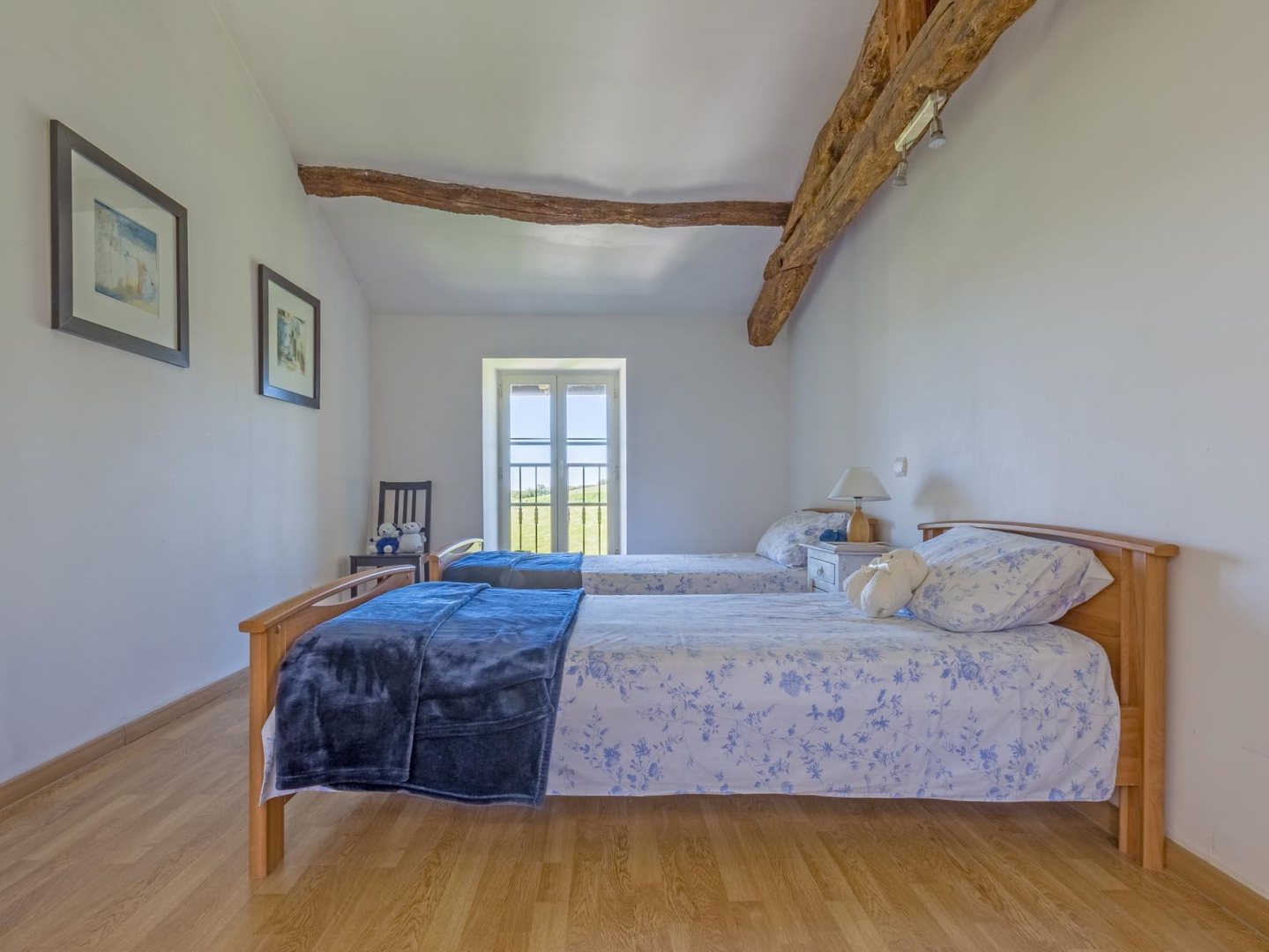 Deux belles chambres avec poutres apparentes et une agréable salle d’eau composent le coin nuit :