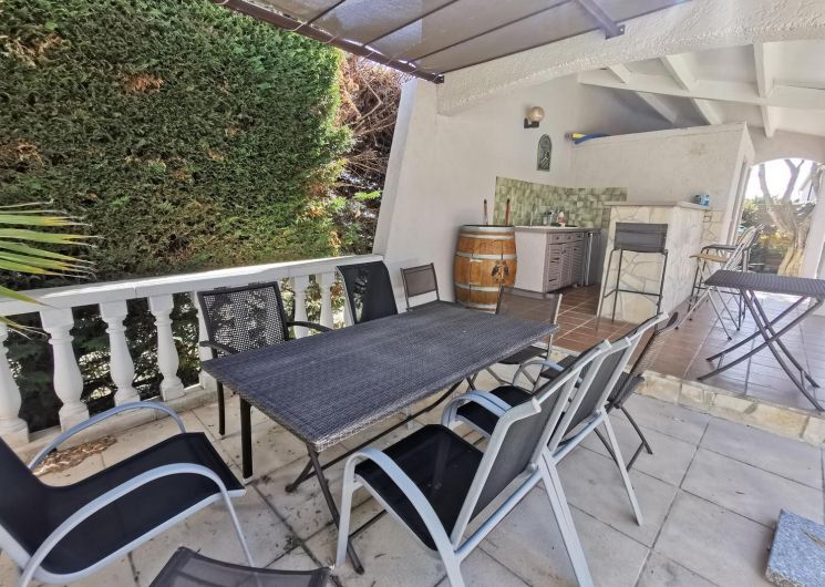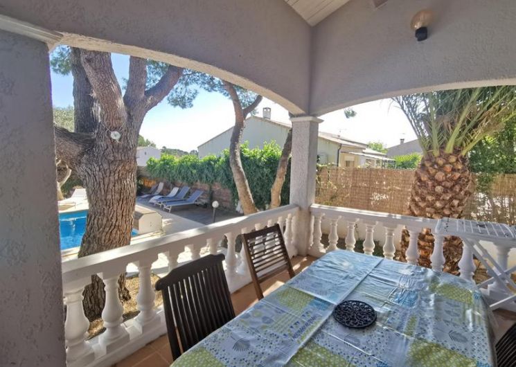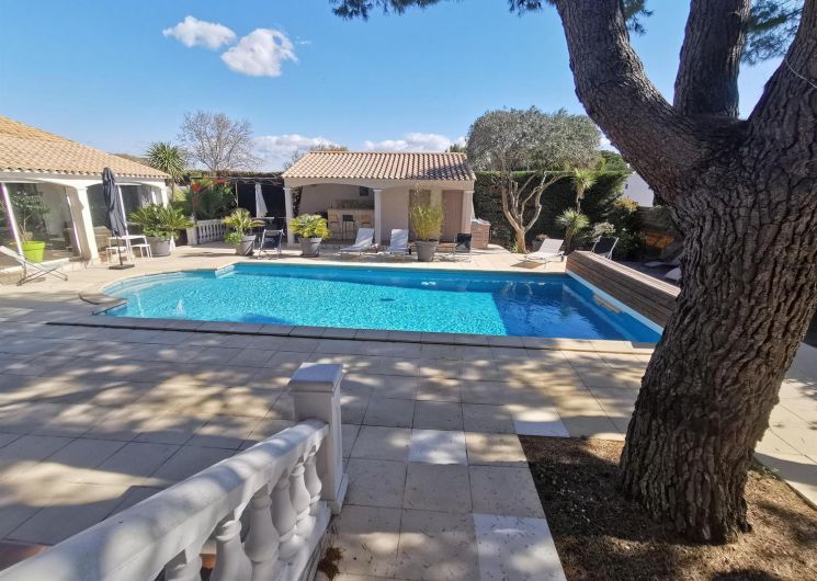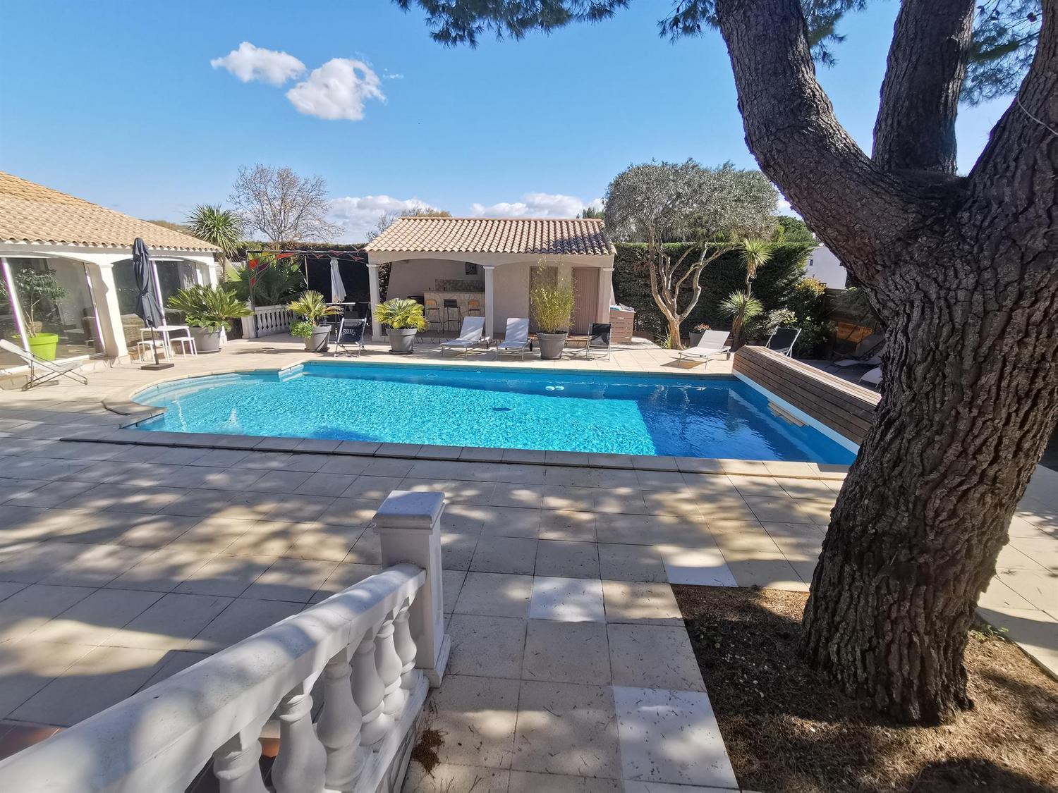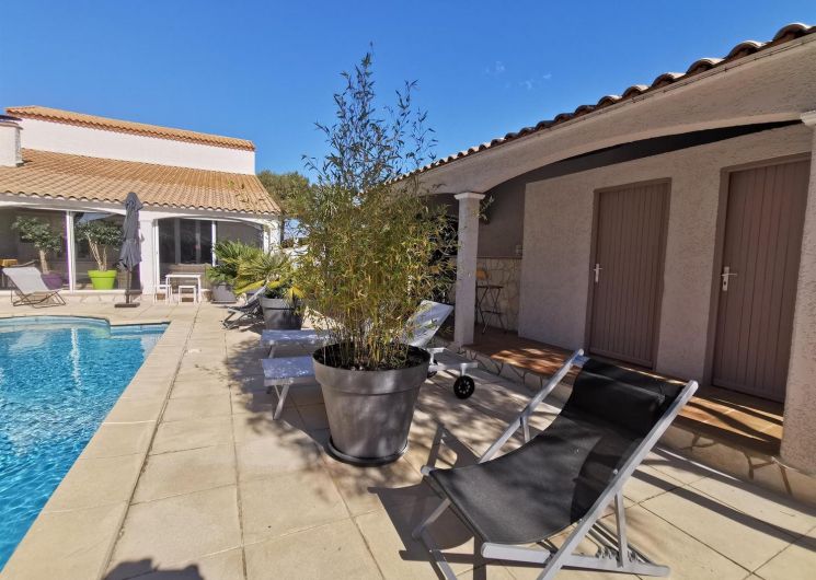 Entre Sète et Béziers, A 300m du village, 2 gîtes sur 2 niveaux, propriétaire sur place. Gîte Regina 1, de 68 m² : Rez de chaussée surélevé : séjour/coin-cuisine/coin-détente (canapé 1 personne), chambre 1 (2 lits 90X190), salle d’eau, wc. 1er étage : chambre 2 (1 lit 140X190), salle d’eau wc., WIFI. Terrasse privative couverte (18 m²). Piscine sécurisée volet roulant, jardin et barbecue communs. Abri couvert. Taxe de séjour en supplément. Location de draps et linge de lit en supplément sur demande.ATTRAITS TOURISTIQUES : Etang de Thau (ostréiculture), Mèze (station de lagunage), Balaruc-les-Bains (station thermale), Pézenas (patrimoine et manifestations culturelles), Agde (cité phocéenne), Cap d’Agde (station balnéaire), Béziers, Canal du Midi (patrimoine Unesco).