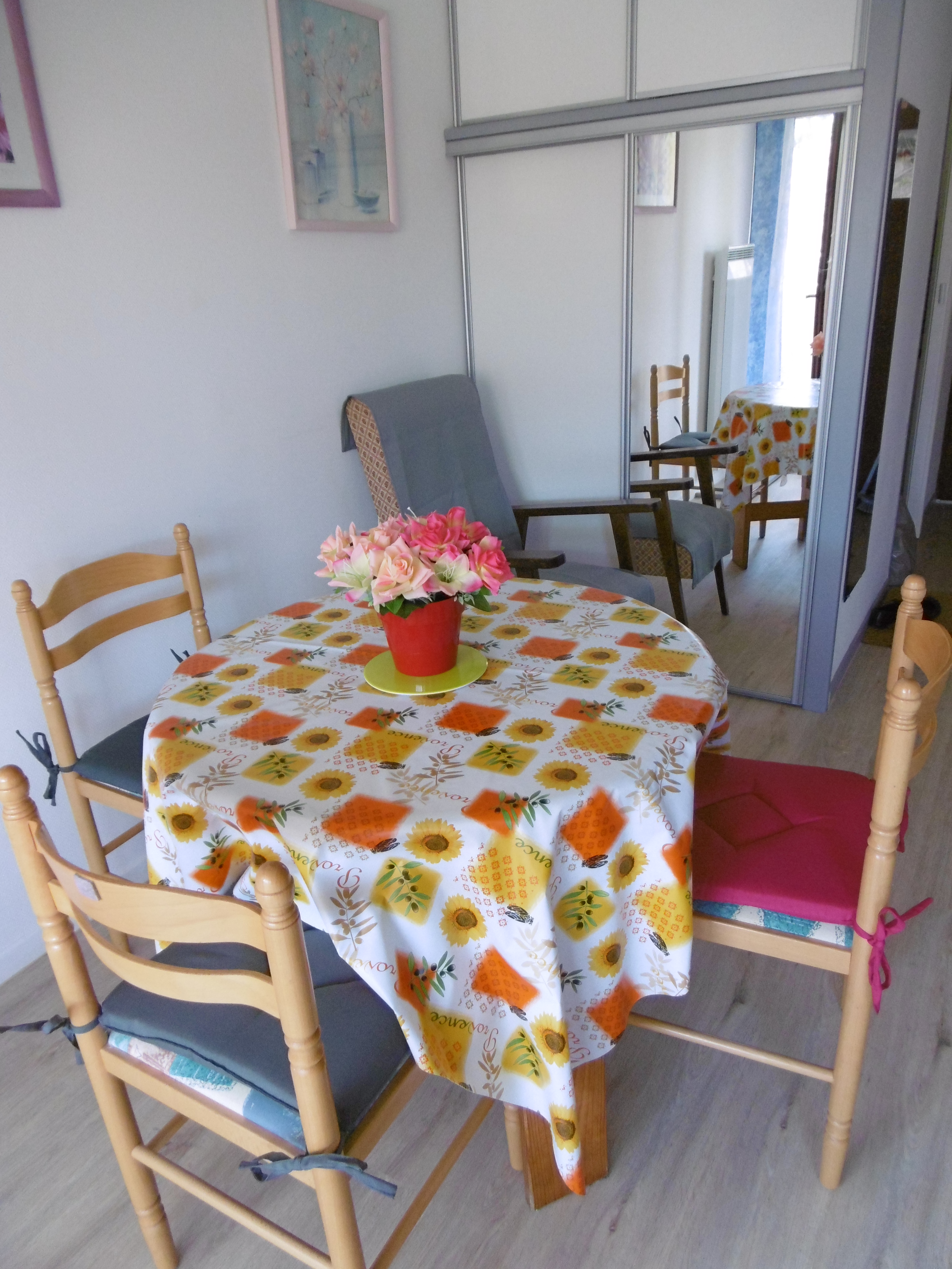 Le balcon exposé plein sud, est équipé d’un store roulant et d’un salon de jardin.