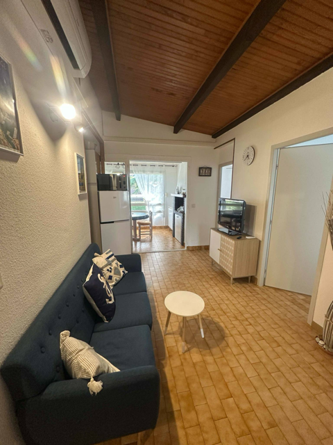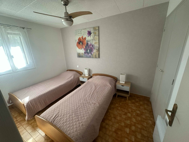 Magnifique appartement 2 chambres (T3) de 46 m2 dans une résidence arborée à 400m de la plage et à 15min à pied du marché piéton d’Argeles Sur Mer. Au 1er et dernier étage d’une résidence avec parking privé, piscine, terrain de pétanque et de tennis. Il vous offre de beaux volumes avec sa pièce de vie de plus de 26m2, de la tranquillité avec sa vue dégagée. Il se compose d’un séjour, cuisine, salle de bain, salon bureau avec tv, chambre double, chambre deux lits jumeaux avec draps de lit fournis. *Kit bébé gratuit sur demande*Internet Fibre 1Gb,Ventilateur dans chaque pièce , clim reversible, Jeux de société à votre disposition. Pour accéder à la plage, il y a un raccourci à l’intérieur de la résidence qui vous sera montré à votre arrivée.