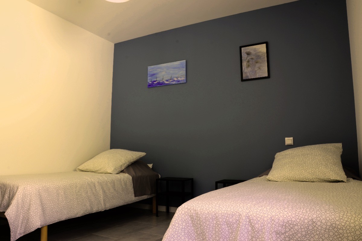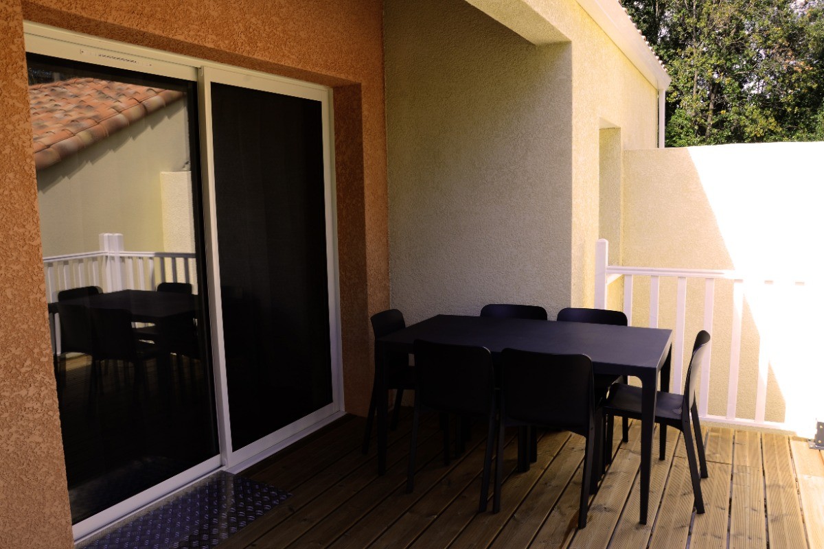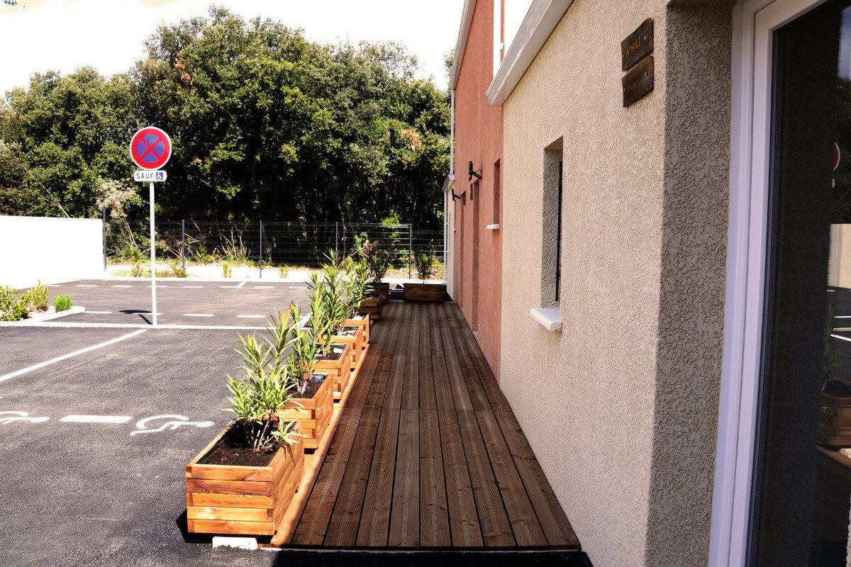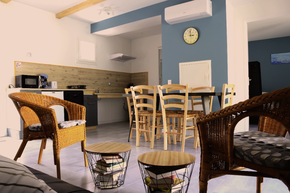 Hébergement Confortable à Lamalou-les-Bains : Appartement PMR avec Terrasse et Parking Privé Découvrez Le Manaka, une résidence de charme située à Combes, labellisée Tourisme et Handicap, construite en 2019, offre six appartements modernes implantés dans un cadre verdoyant, calme et reposant. L’appartement le Saphir, d’une superficie de 48 m² pour 4 personnes (+ 6 m² pour la salle d’eau), en rez de chaussée est situé à 900 m du centre ville de Lamalou-les-bains, et à 1,5km des réputés Thermes du Soleil, cet appartement bénéficie d’un emplacement central parfait pour vos vacances ou votre cure thermale. La location saisonnière se compose d’un séjour avec salle-à-manger et TV Satellite, ainsi que d’une cuisine ouverte bien équipée : cafetière Senséo, micro-ondes, réfrigérateur, lave-linge privé, lave-vaisselle, grille pain, bouilloire. Il offre également une chambre indépendante avec deux lits en 90 cm et une deuxième chambre indépendante avec un lit en 140 cm et un lit en 90 cm. A l’extérieur, vous pourrez profiter d’une terrasse en bois avec salon de jardin donnant sur un jardin verdoyant. L’appartement est également équipé d’une climatisation partielle pour un confort optimal et d’une connexion WIFI gratuite pour rester connecté. Le linge de lit et les serviettes de bains fournis. Les animaux sont acceptés. Un parking privé est également proposé à nos clients. Réservez dès maintenant votre séjour au Manaka et profitez du confort et de la sérénité que vous méritez.