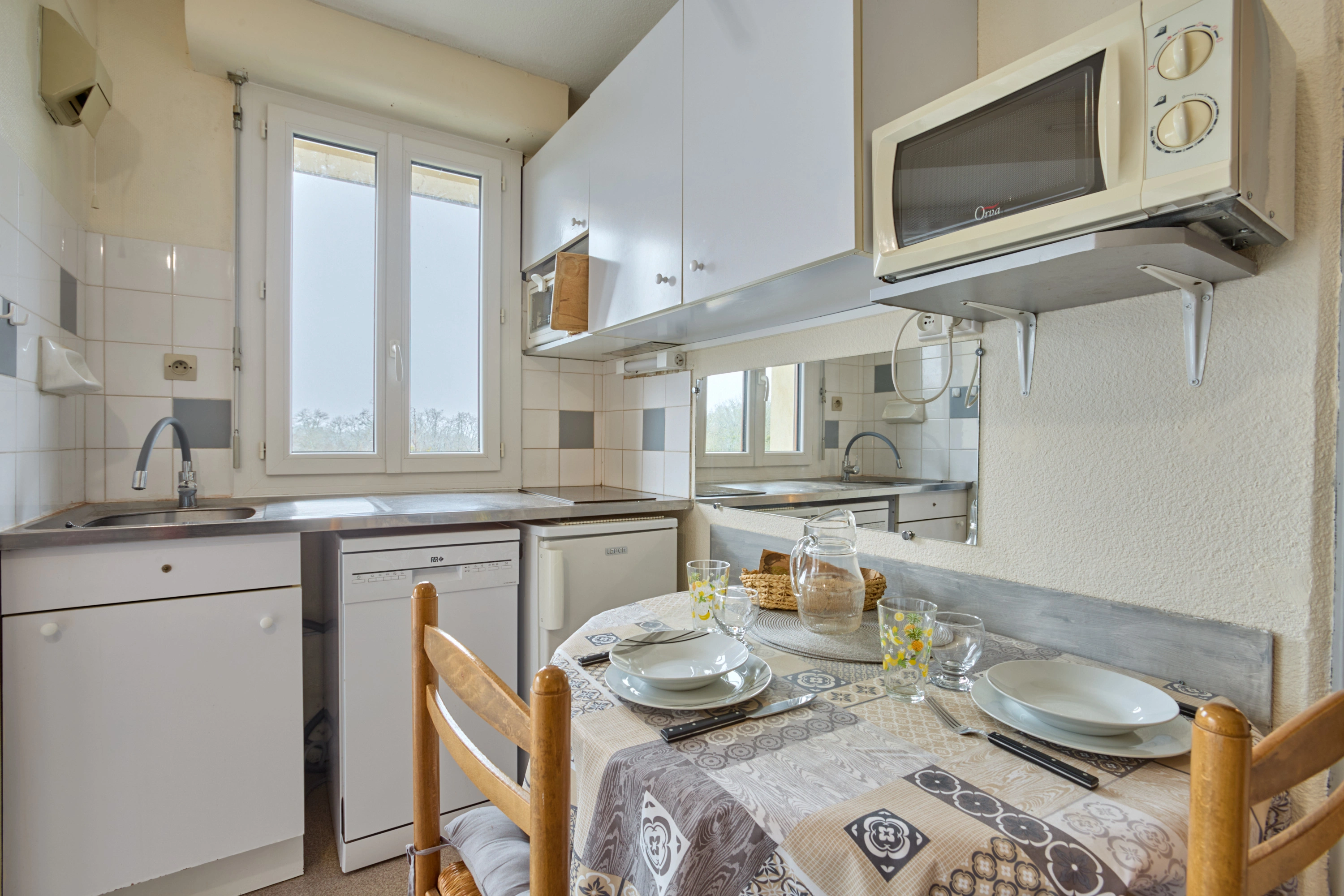 Lumineux et bien agencé, il bénéficie du double vitrage et d’un balcon exposé plein sud. Le séjour comprend une cuisine équipée (2 plaques électriques, réfrigérateur, micro-ondes, mini-four, lave-vaisselle, cafetière classique et Senseo) ainsi qu’un coin salon avec deux fauteuils et une télévision. La chambre est aménagée avec deux lits en 90 cm et un espace de rangement. La salle d’eau dispose d’une douche, d’un lavabo et d’un lave-linge. Les WC sont séparés. WIFI, parking extérieur.