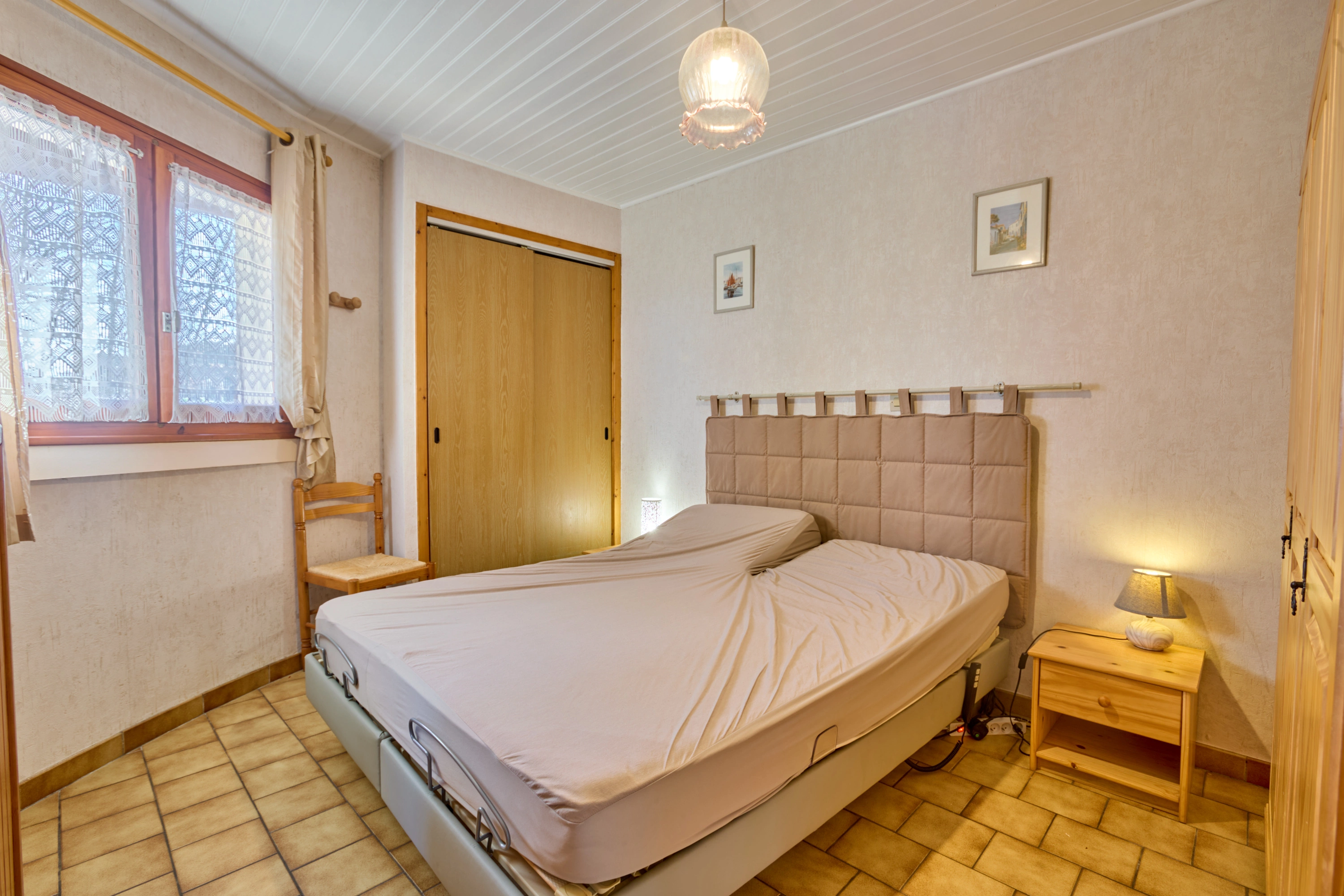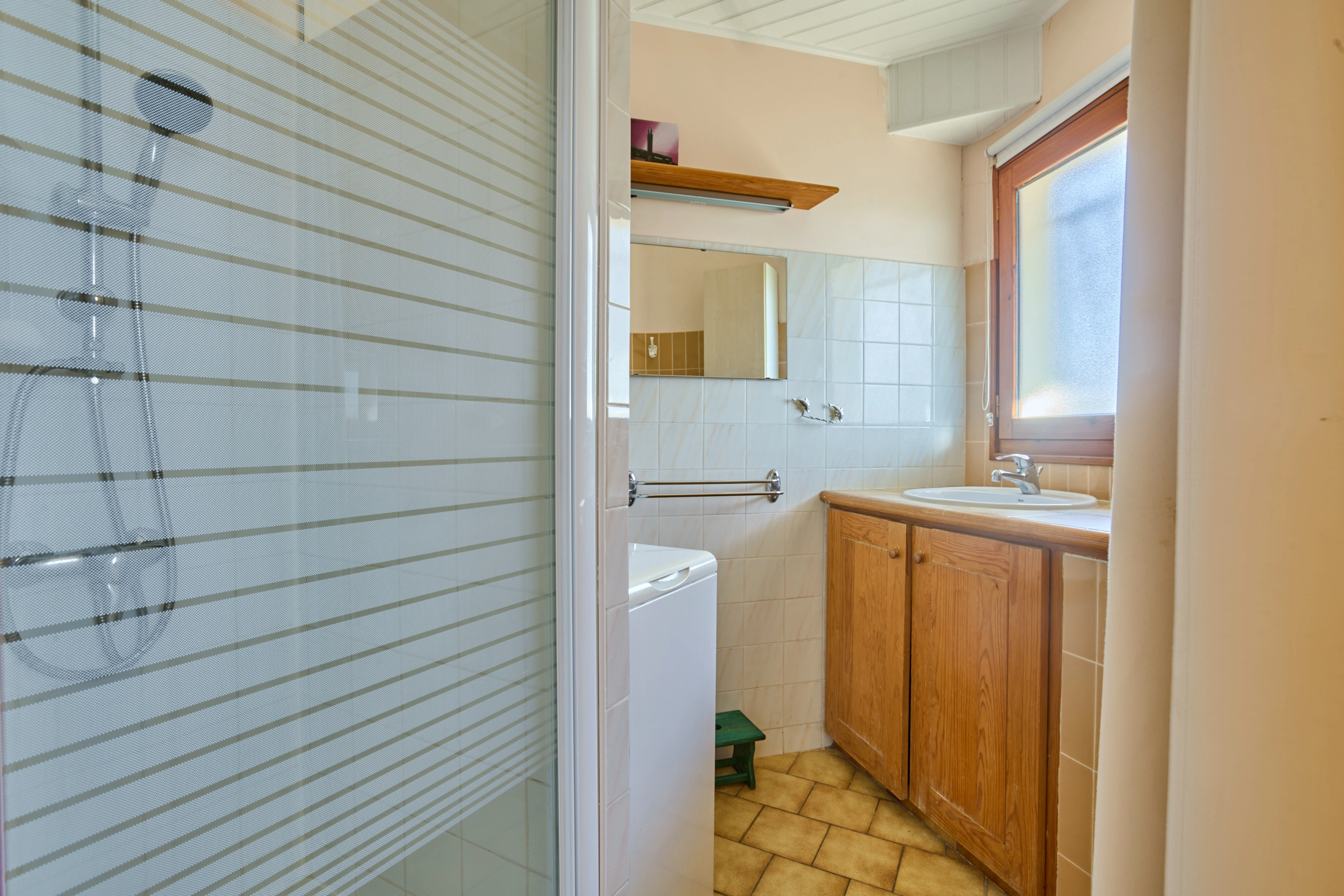 Sa chambre avec deux lits en 80 électriques, une armoire, un placard offre une vue dégagée sur la campagne. Sa salle d’eau attenante est aménagée avec une douche avec porte, un meuble vasque et un lave-linge. Ses toilettes sont séparées.