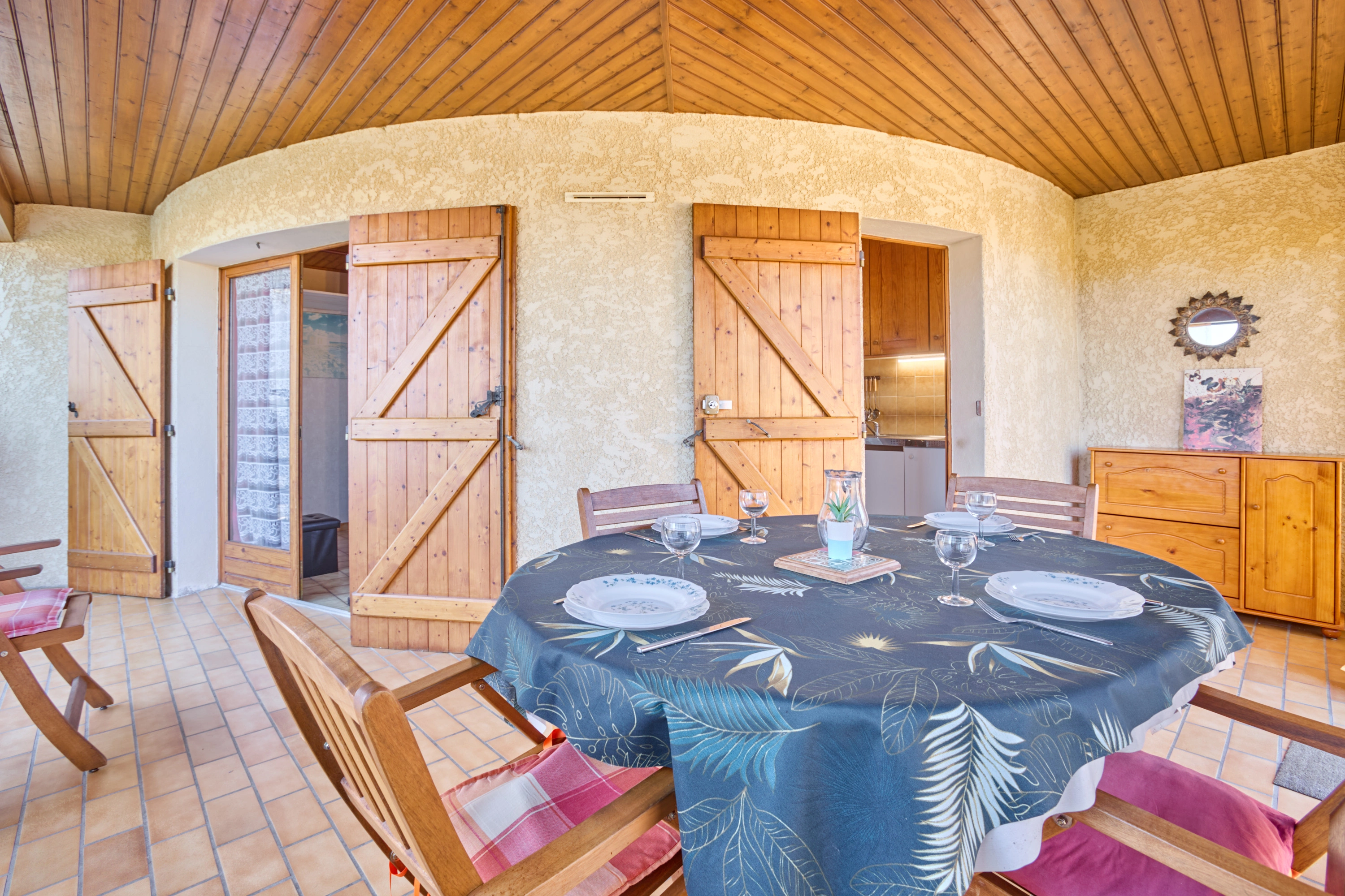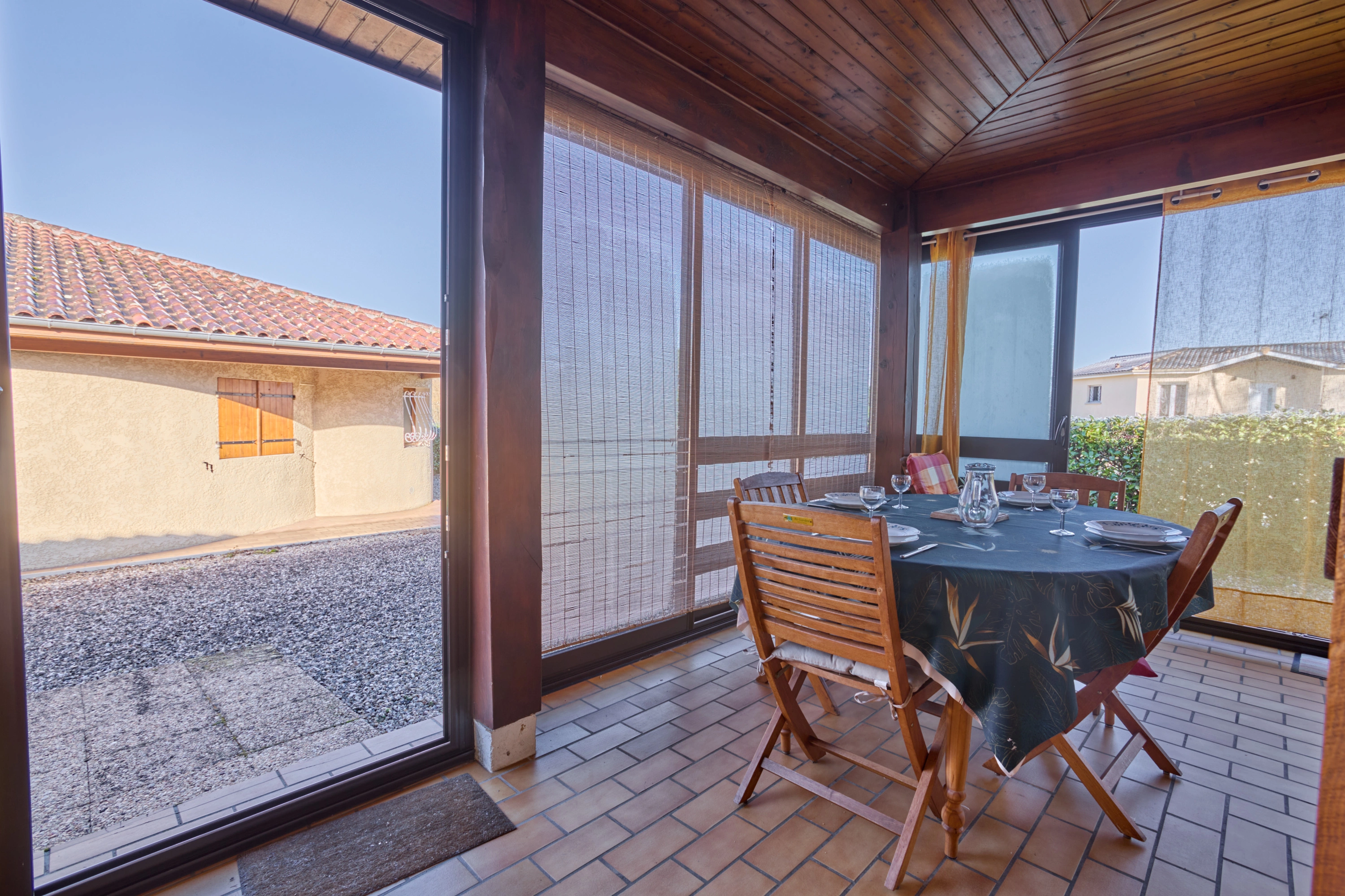 Ce T2 de 32m² de plein pied, est situé route de Lagrange, son plus, c’est sa grande véranda exposée à l’ouest qui vous attend autour d’un salon de jardin en bois composé d’une grande table, six fauteuils et un bain de soleil.