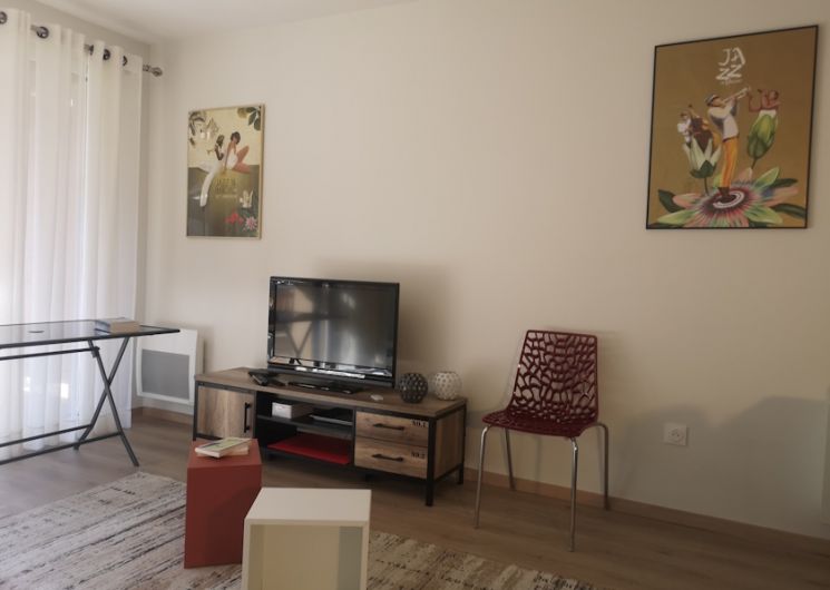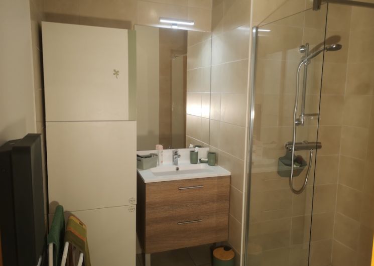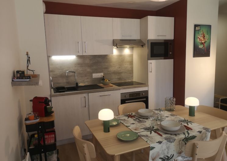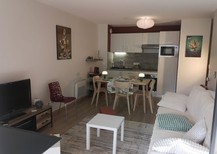 Grands placards…de rangement dans la chambre et le couloir. Pièce de séjour, de 21 m2 équipé d’un canapé de 2 mètres de largeur confortable pour profiter de la lecture ou de la Télévision connectée avec internet tv d’orange, fibre , et ouvert sur la cuisine entièrement équipée, plaques à induction, four, micro ondes, lave vaisselle, réfrigérateur. Vaisselle, cafetière.. . Coin repas pour 6 personnes .. Veiller à toujours protéger la table avec la toile cirée. chaises longues… Toilettes WC avec machine à laver le linge. Salle de bain avec douche, placard de rangement. Eau chaude par ballon thermodynamique A l’extérieur casier ski et chaussures. A votre disposition parking couvert gratuit dans la résidence. Possible pour les voitures électriques de trouver un emplacement public de recharge à 3 min à pied.. Observations : animaux non admis dans l’appt.