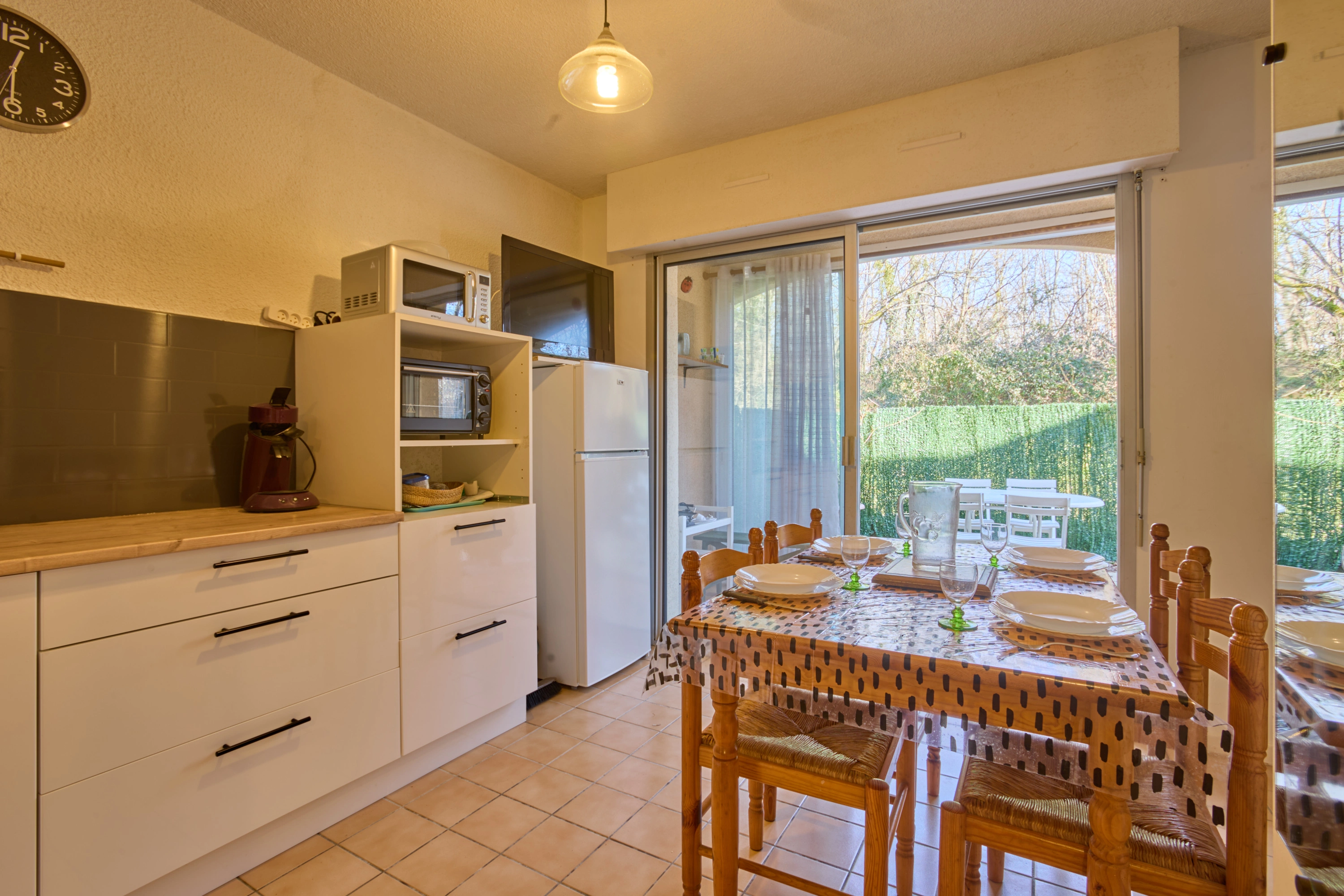 Situé en rez-de-jardin du bâtiment D de la résidence Les Lotus II, ce T1 bis dispose d’un jardin privatif clos avec terrasse et salon de jardin.