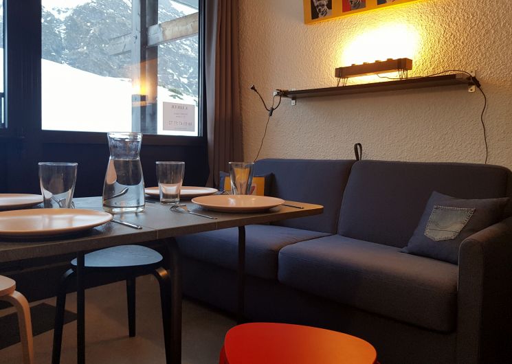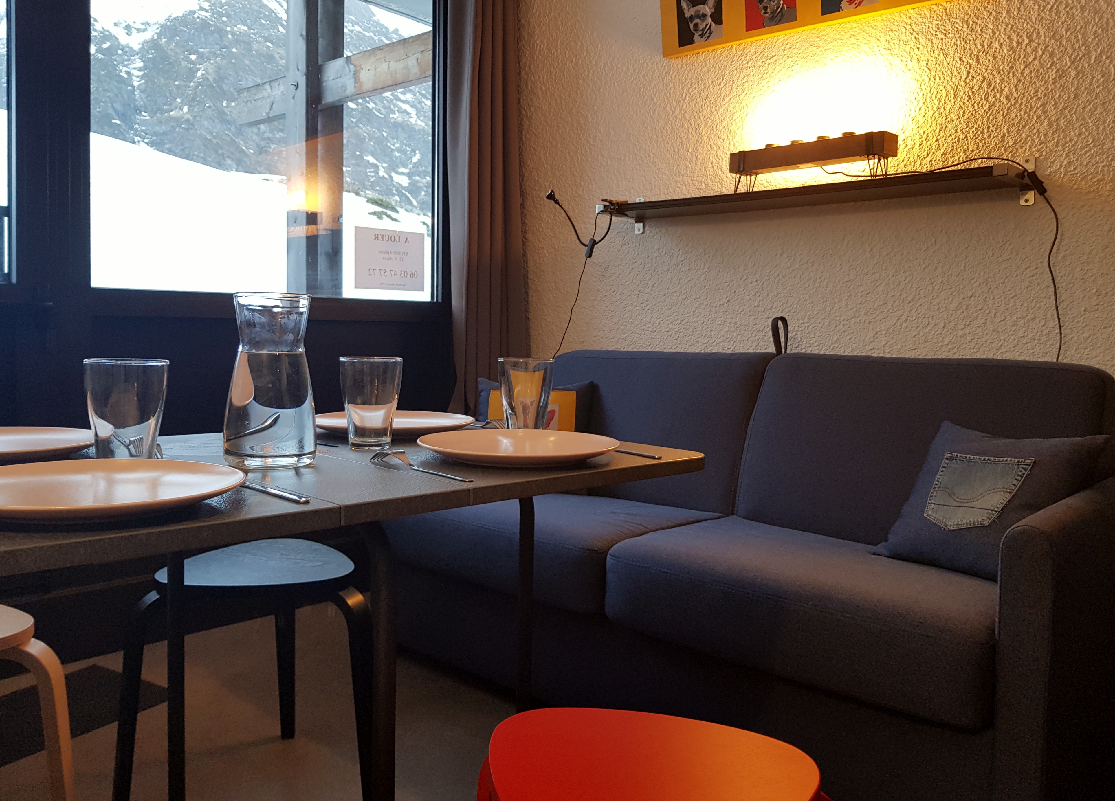 Studio pour 2 personnes – 1er étage – Ascenseur. Orientation Nord. Accès extérieur sur coursive. Séjour avec canapé convertible (140×190, modèle rapido, avec un véritable matelas), en complément 2 lits superposés (90×190). Coin cuisine équipé – Salle de bains avec baignoire et WC. Vous disposerez de tous les équipements nécessaires: TV, lecteur dvd,films dvd, jeux,livres, documentation touristique. Dans le coin cuisine:cafetière filtre,cafetière nespresso,grille-pain, bouilloire,four micro-ondes combiné,appareil à raclette .