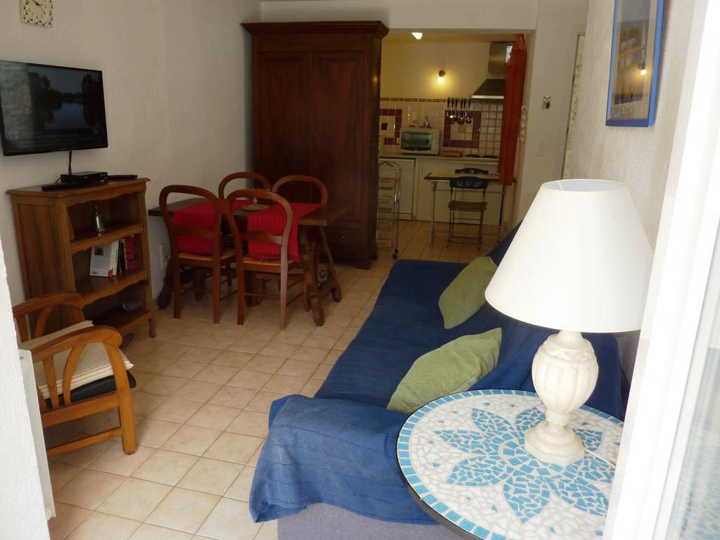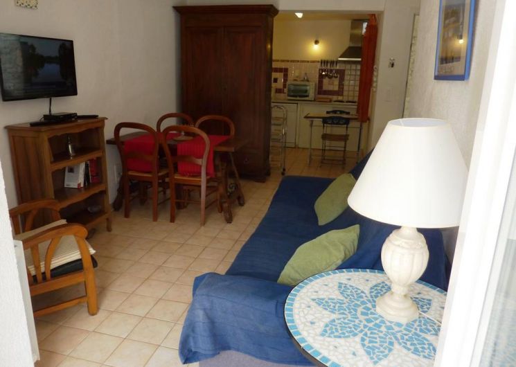 Cet appartement comprend : 1 salle à manger avec coin salon, coin cuisine équipée, 1 chambre (1 lit 140), salle d’eau. Balcon. Parking. Jardin en commun. Ouvert toute l’année. .