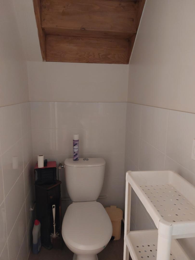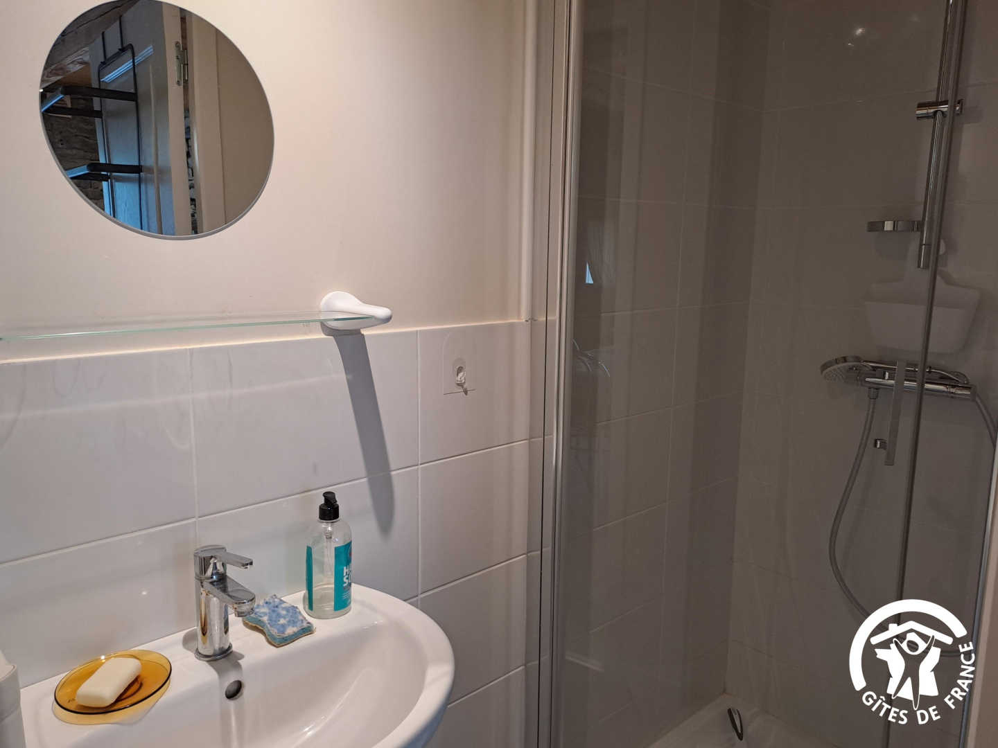 Rez-de-chaussée : grande pièce à vivre (32m²) : cuisine ouverte toute équipée (Cuisinière vitro-céramique avec four, lave-linge, réfrigérateur avec compartiment congélateur, radio, four micro-ondes, meubles de rangement), coin salon avec tv, canapé (convertible*), salle d’eau avec douche et wc.