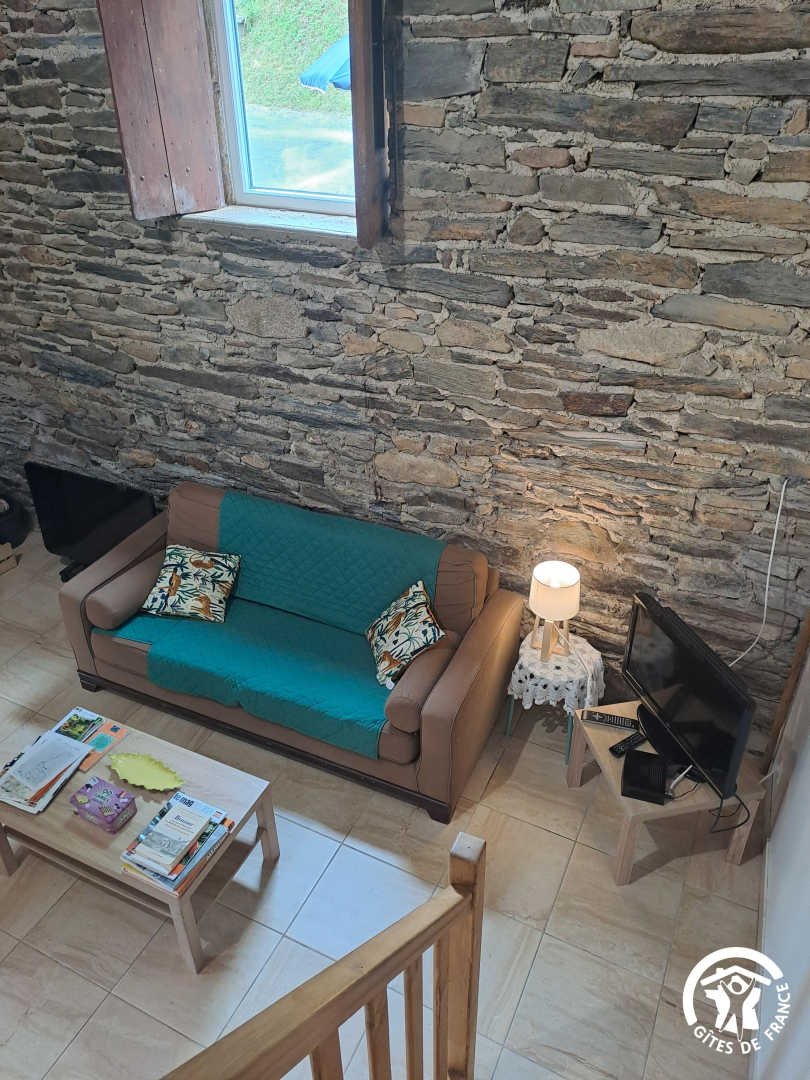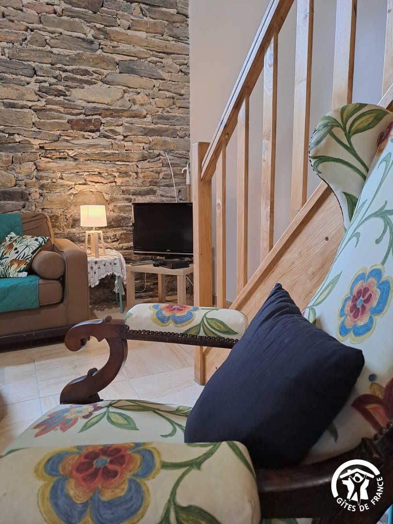 Le gîte a été aménagé dans une ancienne remise, les murs sont en pierres apparentes.