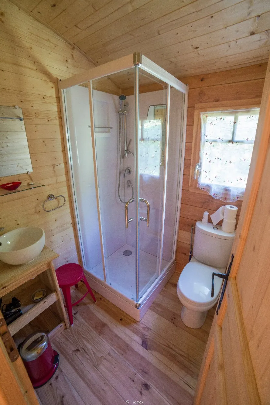 Roulotte indépendante, au milieu des bois, dans un hameau : coin-séjour/kitchenette équipée avec coin-repas, TV, accès internet, salle d’eau et wc, 1 chambre (1 lit 140), chauffage électrique. Terrasse de 5m avec salon de jardin et barbecue privatifs.