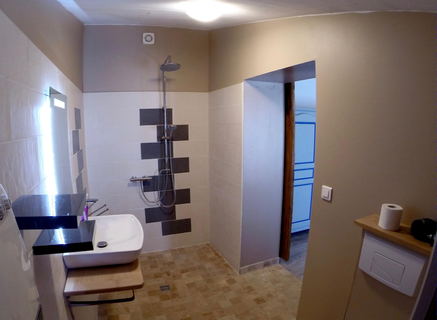 * Salle d’eau avec douche italienne, une vasque et wc