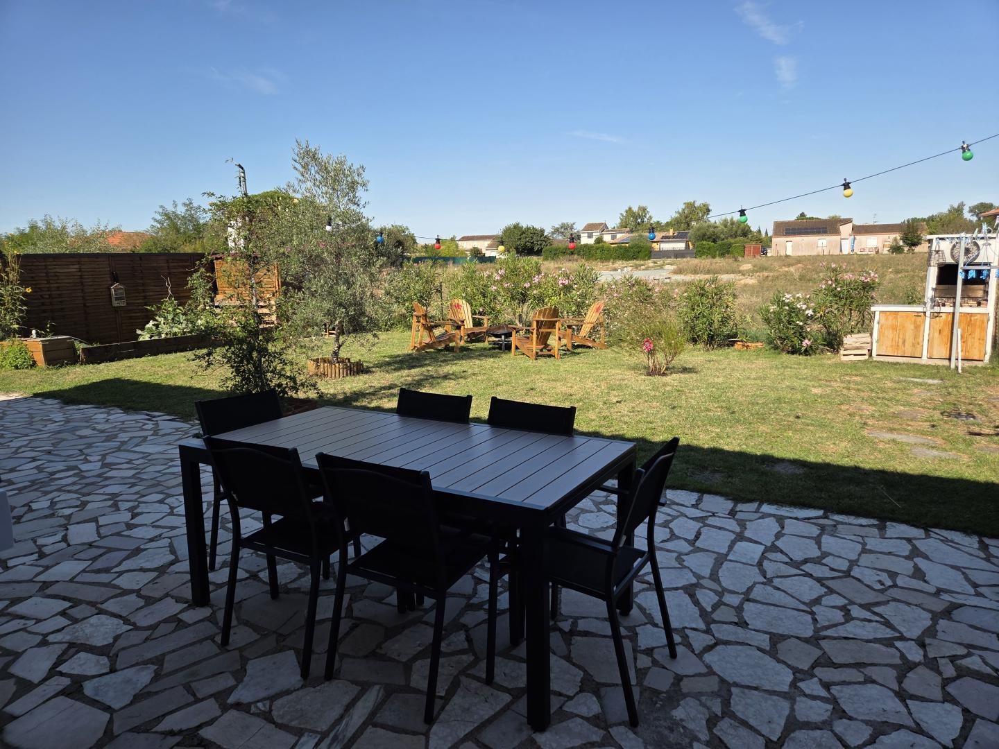 A l’avant de la maison, une petite terrasse couverte, idéale pour le café du matin. A l’arrière du gîte, le jardin clos avec table, bain de soleil, barbecue charbon et plancha gaz