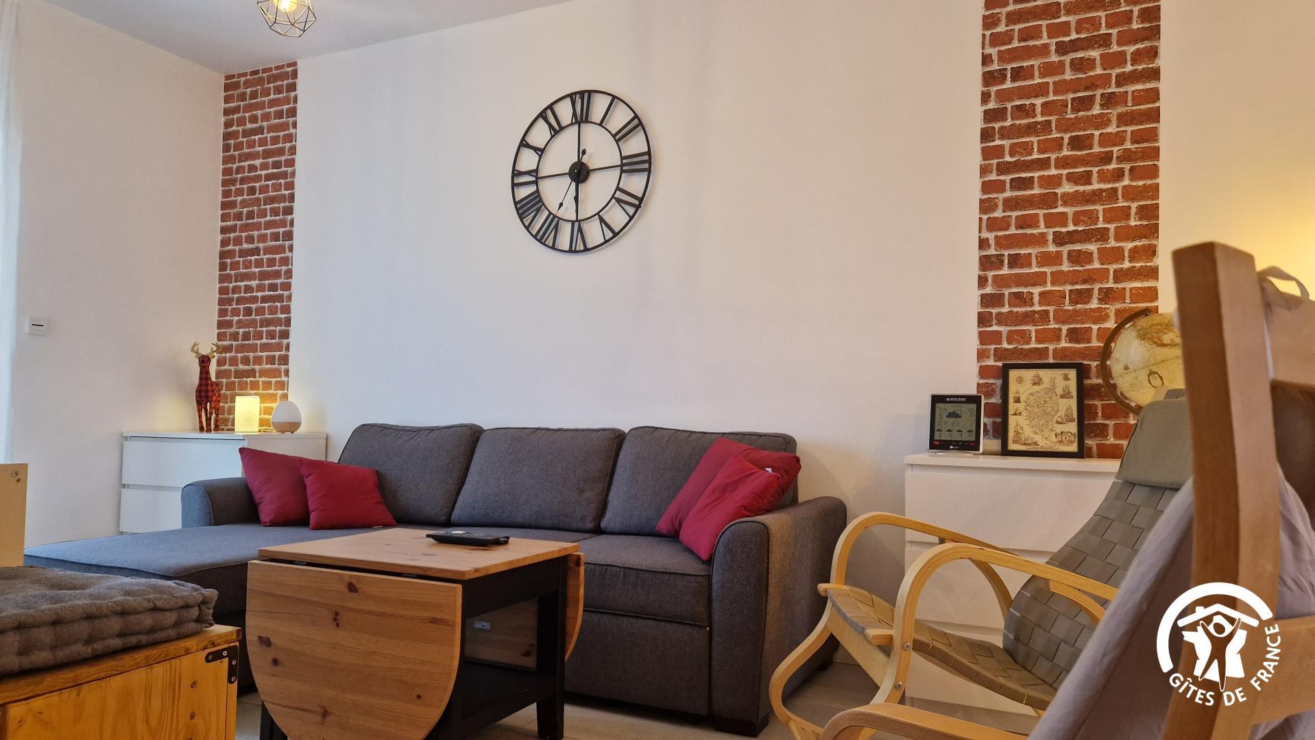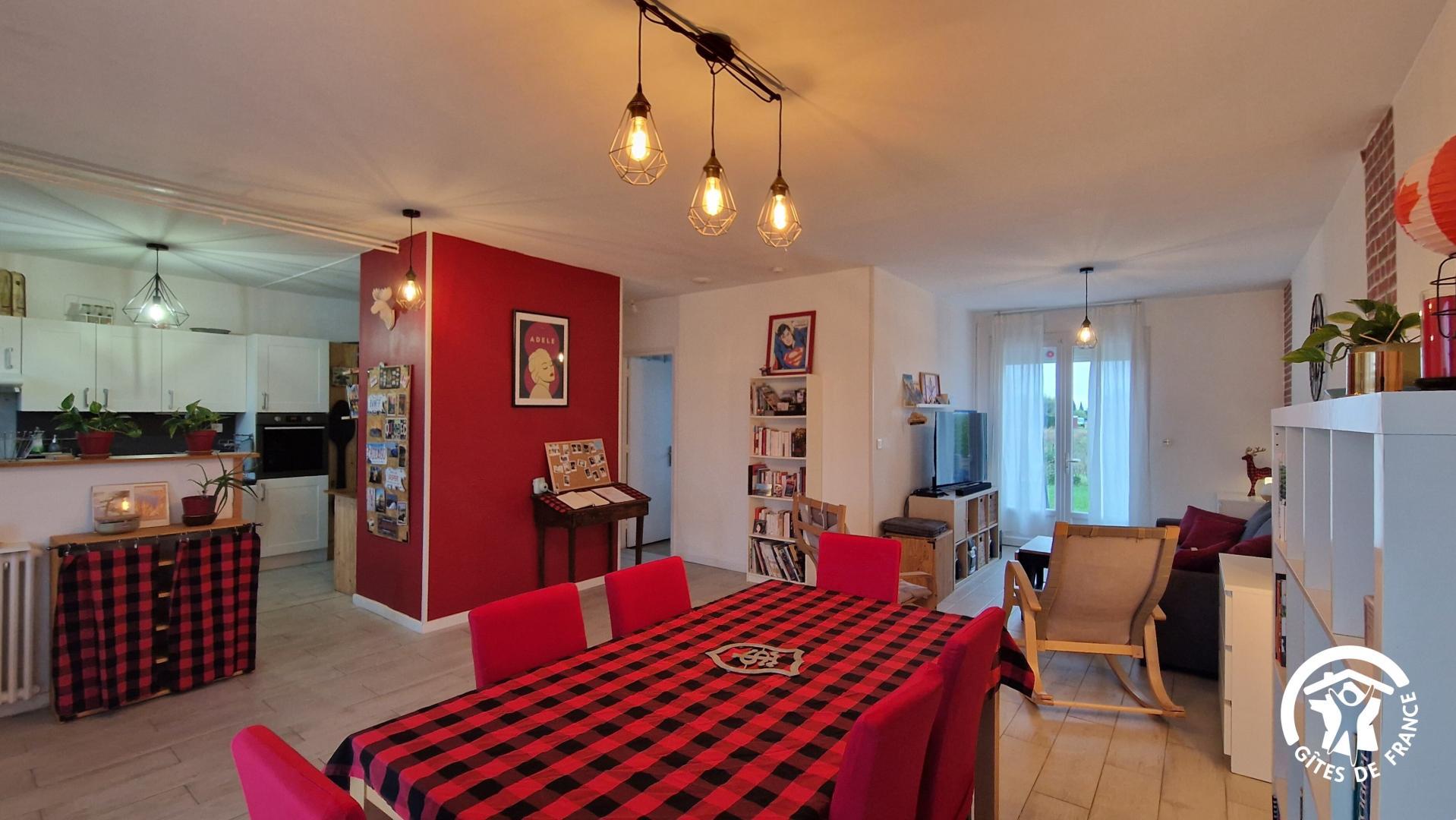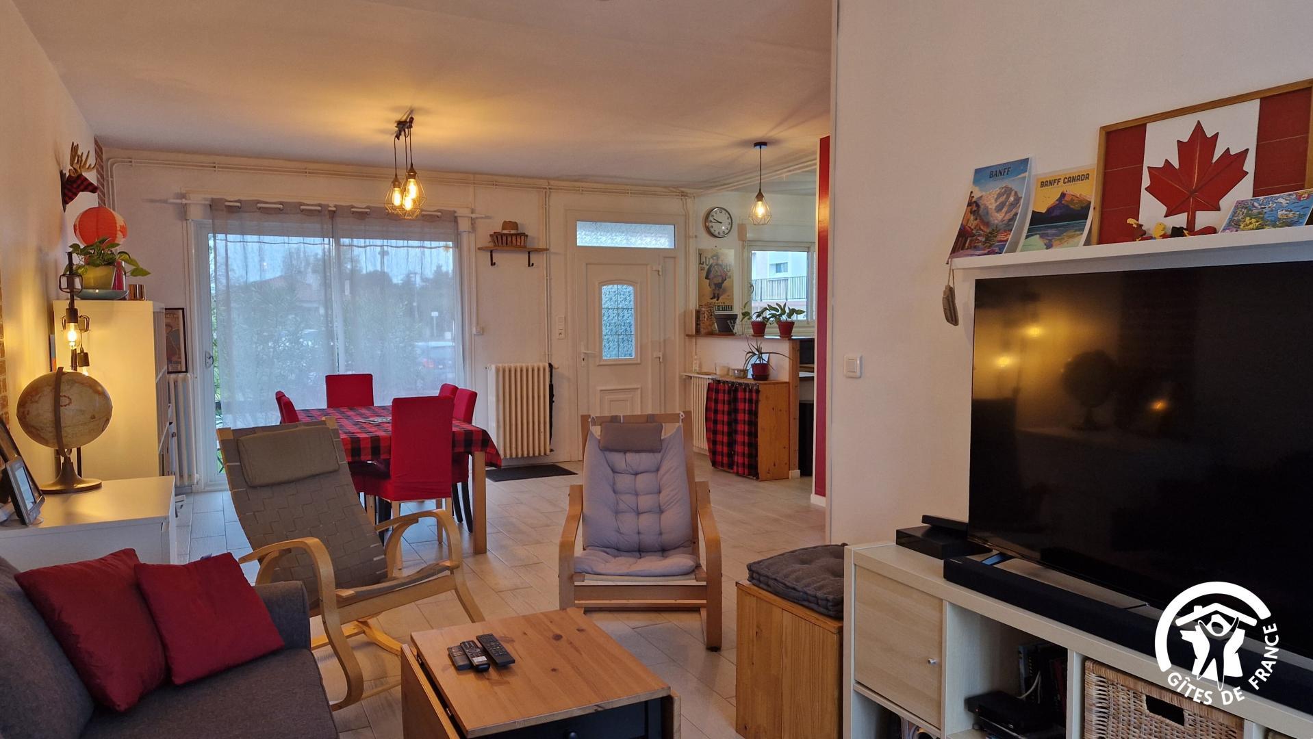 – l’espace salon avec le grand canapé convertible pour 2 couchages supplémentaires, TV, chaine Hi-Fi, jeux de sociétés et livres. Depuis le salon, accès au jardin à l’arrière de la maison