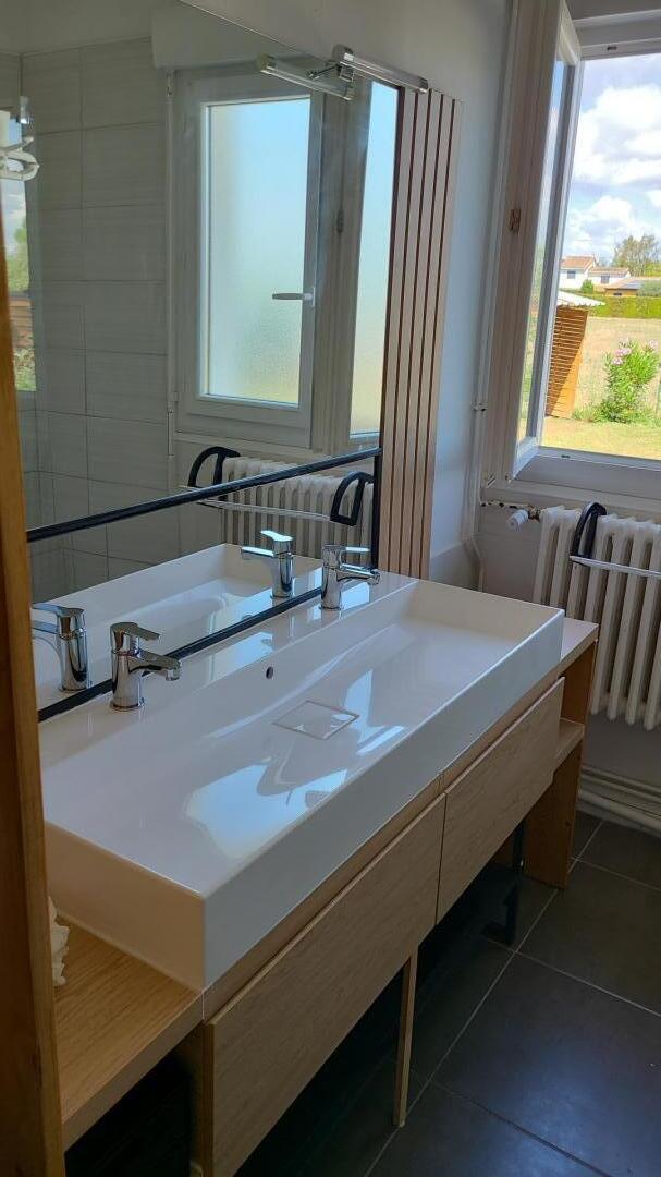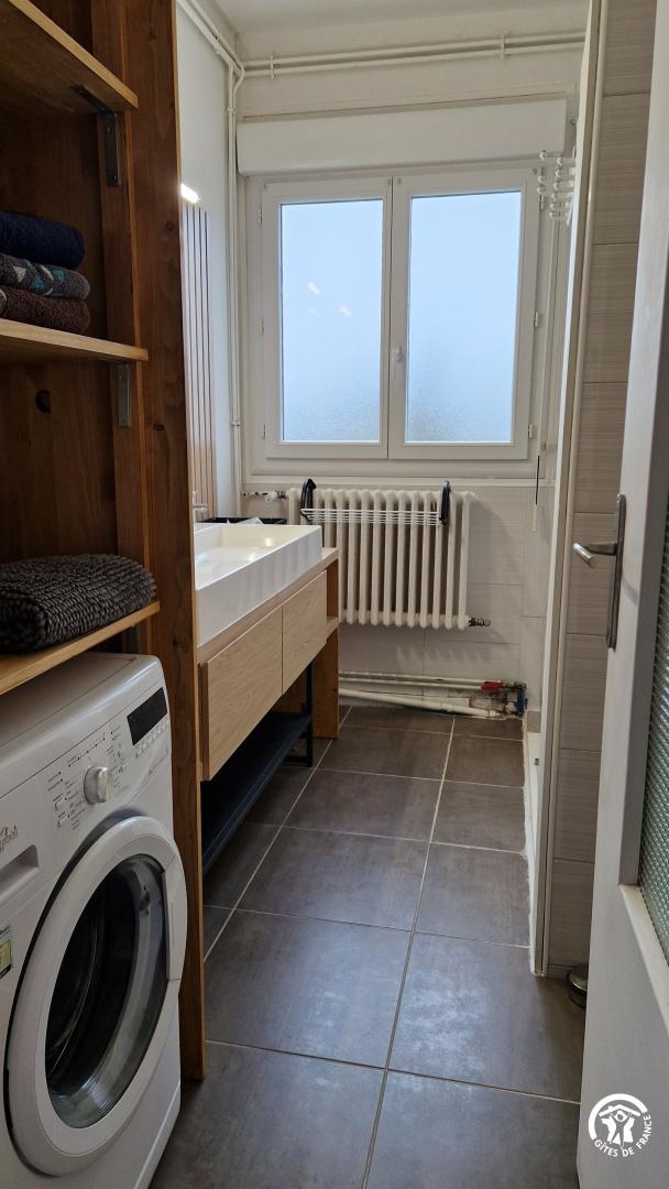 – une salle d’eau avec douche, grande vasque et lave-linge. Les wc sont indépendants