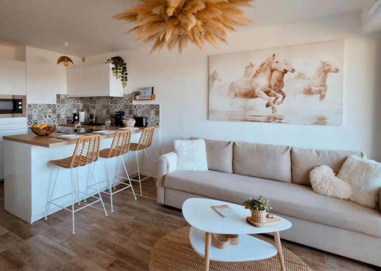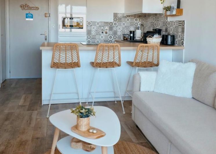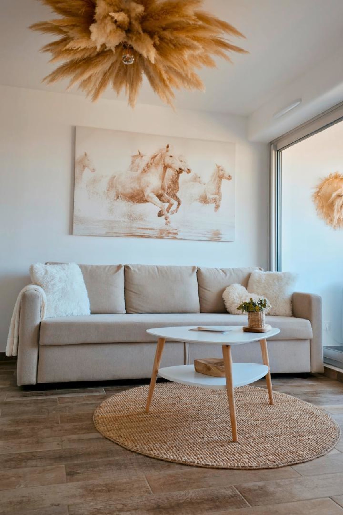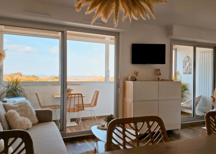 Ses nombreux équipements et sa localisation sont parfaits pour des vacances sous le soleil de l’Hérault ! Situé à seulement 200 mètres de la plage et à deux pas du port, ce gîte est l’occasion parfaite pour passer ses vacances au bord de l’eau, tout en pouvant visiter non loin de là des sites incontournables de la région : Montpellier, la Petite Camargue, le Grau du Roi, Palavas-les-Flots… De par son emplacement au cœur de Carnon-Plage, il vous sera également possible de vous rendre à pied dans les nombreux commerces, restaurants et services à seulement quelques pas de l’appartement (une centaine de mètres en traversant la rue en bas de l’appartement). L’Etang de l’Or est également à deux pas de l’hébergement. Le studio (climatisé) se compose de : – Un coin nuit avec un lit 2 personnes 140×190 cm ; – Un espace salon avec un canapé confortable trois places convertible en lit simple 90×200 cm, idéal pour un enfant, une télévision (connectée avec Canal+, Disney+ et Prime Vidéo, possibilité de Chromecast) et des meubles de rangement ; – Une cuisine très bien équipée avec four, micro-ondes, réfrigérateur avec compartiment congélateur, lave-vaisselle, cafetière Nespresso, bouilloire, grille-pain et tout le nécessaire de cuisine ; – Une salle de bain avec baignoire, vasque avec miroir et machine à laver ; – Un WC séparé indépendant de la salle de bain ; – Une loggia/patio avec vue panoramique sur Carnon et les alentours, comprenant un espace détente et repas. A vivre absolument : le lever de soleil sur la plage, à 2 mn et incroyable ! Un lit parapluie et une chaise haute (0-3ans) peuvent également être mis à disposition par votre hôte. Vous aurez la possibilité de vous garer sur plusieurs grands parkings publics (gratuit sauf durant la saison estivale – forfait 8€/jour ou 35€/semaine) à 150 mètres du gîte, et des bornes de recharge électrique sont également disponible à la même distance. Caution ménage pour les personnes ne réservant pas l’option ménage: 35€.