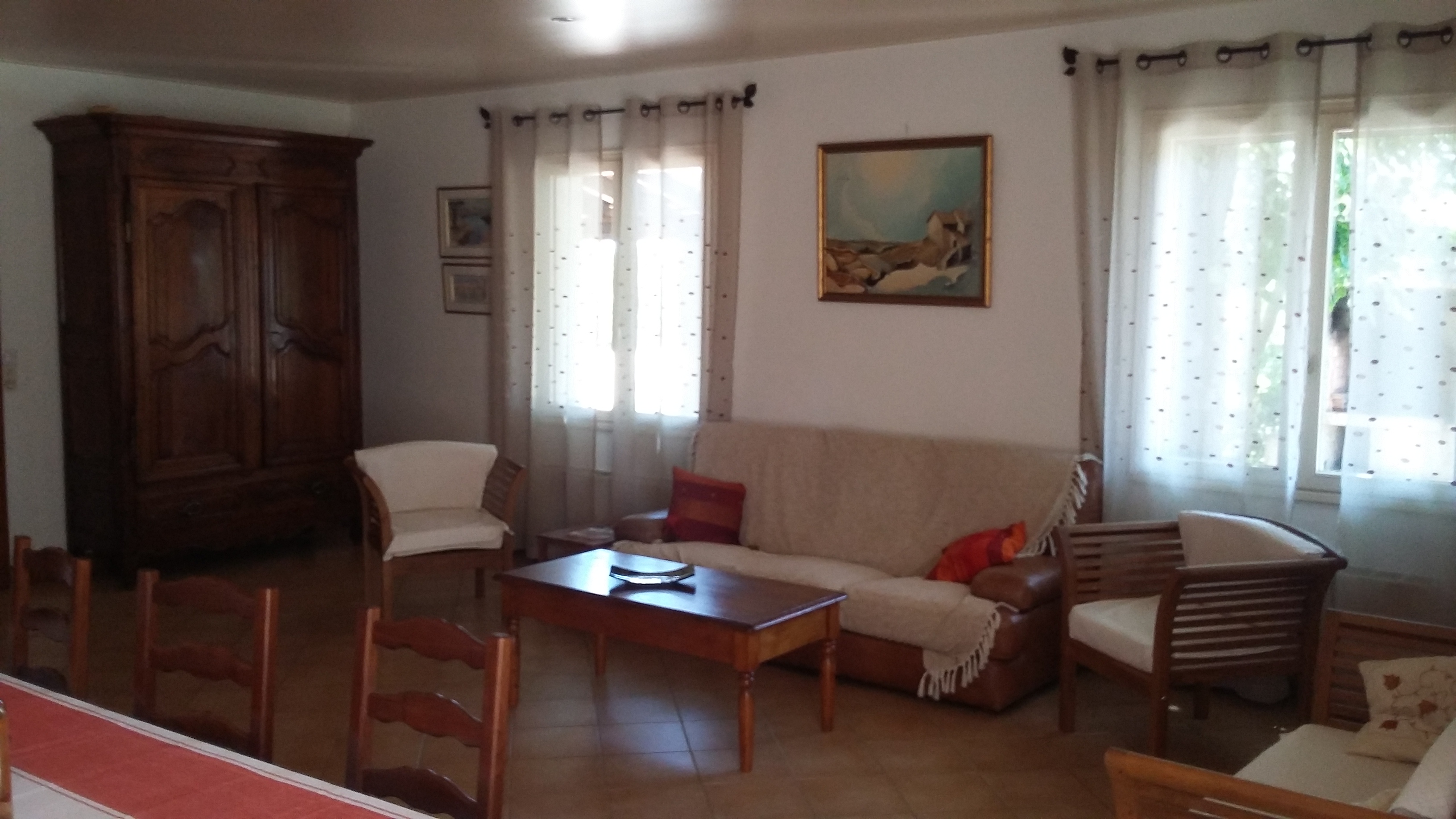 Entre ville et campagne (dans domaine viticole comprenant 1 bâtiment agricole et l’habitation du propriétaire), agréable maison indépendante en R.C. de 120m2, lumineuse et confortablement équipée.