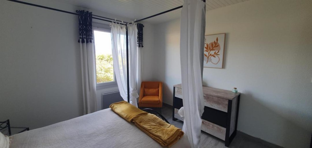 Situé à Montazels, au cœur de la Haute Vallée de l’Aude, ce gîte rural moderne et confortable vous accueille dans un environnement calme, propice à la déconnexion. À proximité, partez à la découverte du mystérieux village de Rennes-le-Château, explorez les ruelles d’Alet-les-Bains, ou profitez des eaux vives de la région pour des activités sportives en pleine nature. Le château de Puivert et les bulles de Limoux ne sont qu’à quelques kilomètres, tout comme le musée des dinosaures, une sortie incontournable en famille. Cette maison indépendante de plain-pied, sans vis-à-vis avec les propriétaires, peut accueillir jusqu’à 6 personnes. Le séjour climatisé, équipé d’un poêle à bois, offre un espace chaleureux et lumineux, avec un coin salon doté d’une télévision connectée. La cuisine ouverte est entièrement équipée : lave-vaisselle, four, micro-ondes, lave-linge, réfrigérateur, congélateur et cafetière traditionnelle. Côté nuit, le gîte dispose de trois chambres confortables : • Chambre 1 : lit double 140×190 – 9 m² • Chambre 2 : lit double 140×190 – 9 m² • Chambre 3 : lit double 140×190 – 13 m² Une salle d’eau avec douche à l’italienne et des WC indépendants complètent l’aménagement intérieur. À l’extérieur, profitez d’un jardin privatif avec vue sur les montagnes, d’une terrasse ombragée équipée d’un salon de jardin et d’un store pour vos repas en plein air. Le stationnement est facile grâce à un parking privé sur le terrain ou dans le garage. Ce gîte est particulièrement adapté aux familles, aux couples en quête de tranquillité, aux télétravailleurs et aux cyclistes souhaitant explorer les sentiers alentours. Les chemins de randonnée sont accessibles à pied depuis la maison.