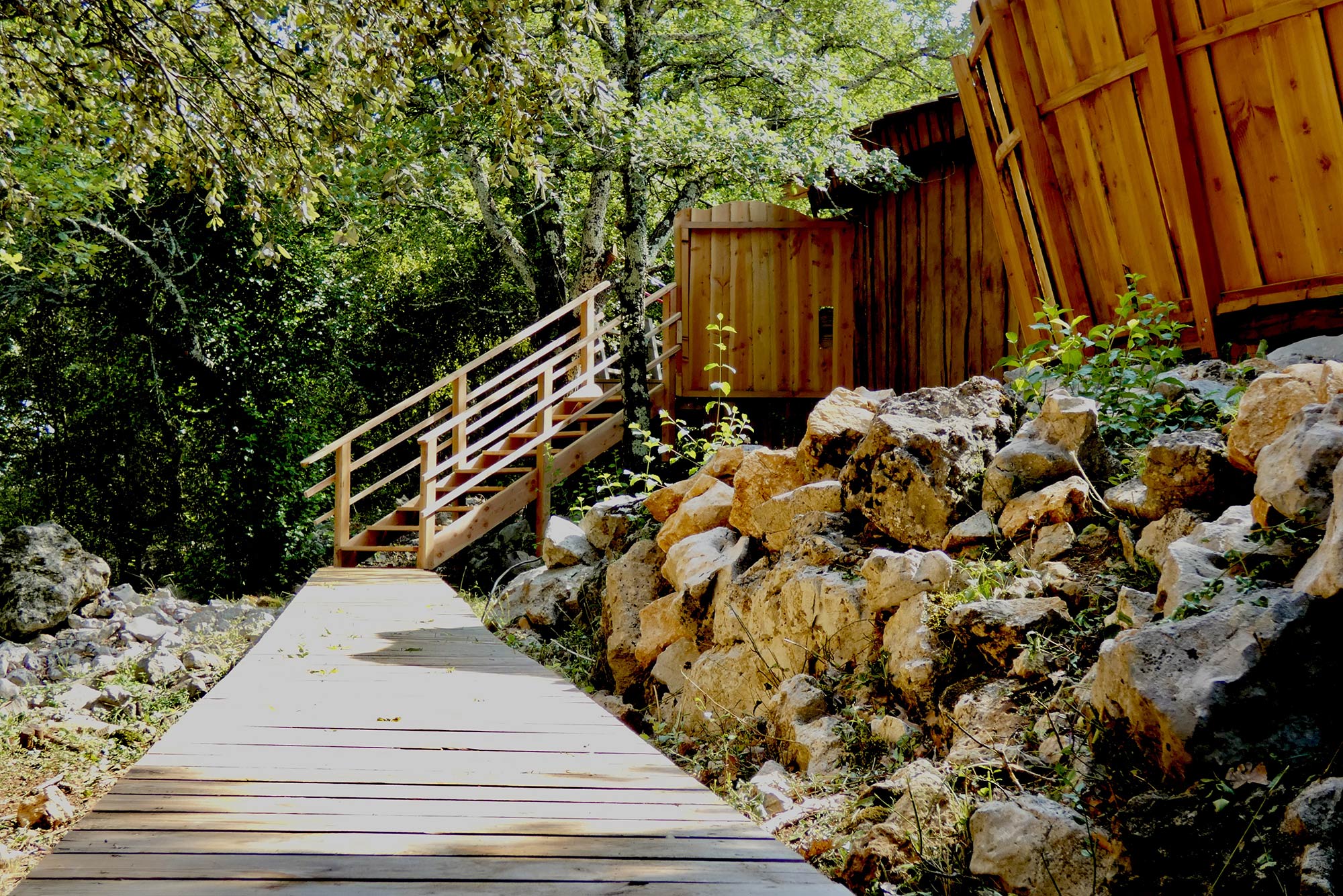 Sur notre terrain de 5 hectares, nous prônons la tranquillité, les grands espaces, le confort, la beauté et le respect. Toutes les cabanes sont bien isolées, équipées de poêles à bois qui garantissent la chaleur durant l’hiver, et la fraicheur l’été.