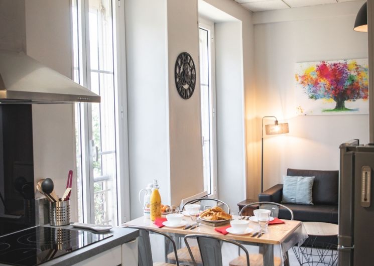 Grand studio rénové en centre-ville à Argelès-Gazost, au calme, avec vue sur les montagnes.