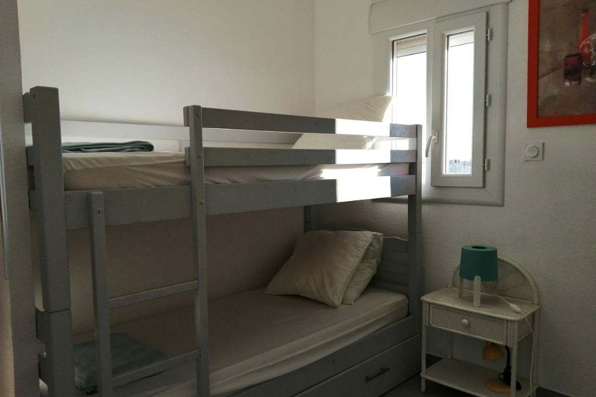 RÉF. 1RICH29 Très beau Studio cabine entièrement rénové, très lumineux et spacieux. Au cœur du Centre Port, dans une résidence sécurisée avec accès piscine. Terrasse avec vue sur le port. 4è étage avec ascenseur. Parking privé. Composé de : entrée, grand séjour avec canapé convertible, cuisine équipée avec îlot coin repas, salle d’eau avec wc, chambre cabine avec lits superposés, terrasse couverte avec table et chaises de jardin. Confort : 1 canapé convertible en 140, 2 lits superposés et 1 lit tiroir en 80. Aménagé pour 4/5 personnes : 2 adultes maximum + enfants. Plage à 900m, commerces à 50m, port à 10m.