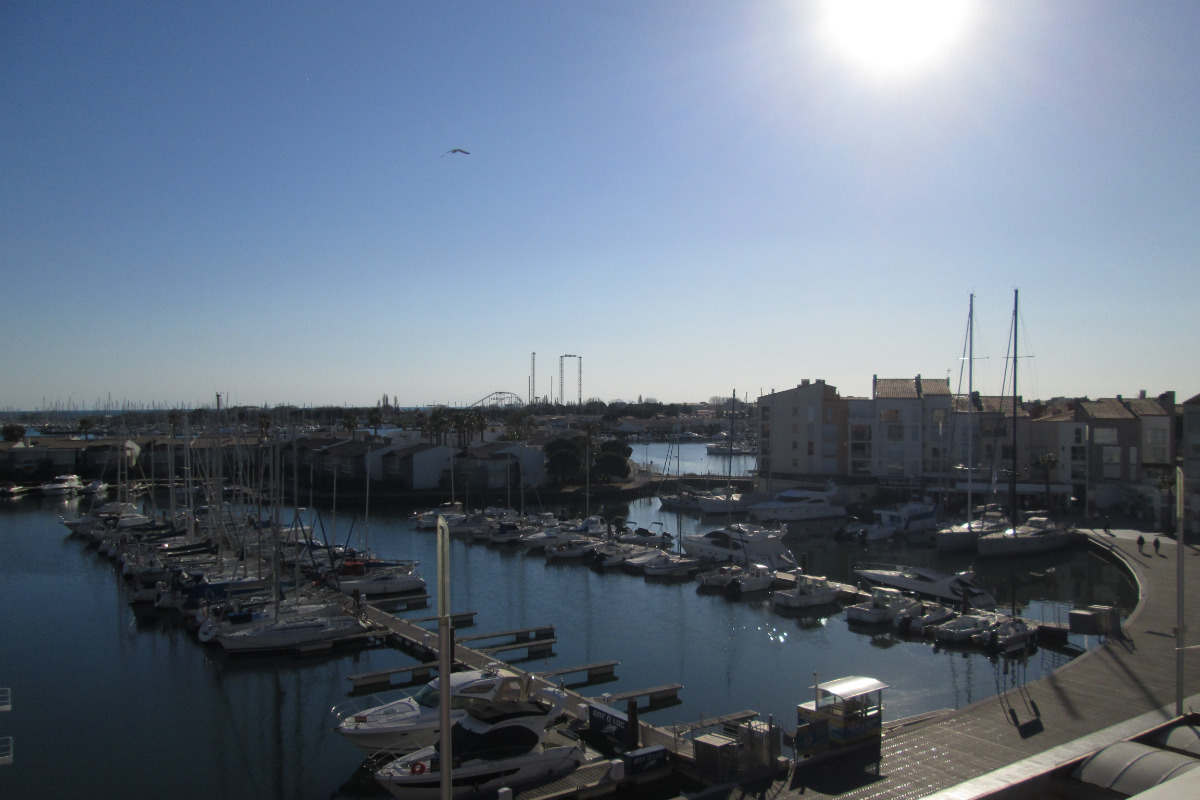 STUDIO CABINE AVEC VUE PANORAMIQUE SUR LE PORT ET ACCÈS PISCINE – CAP D’AGDE