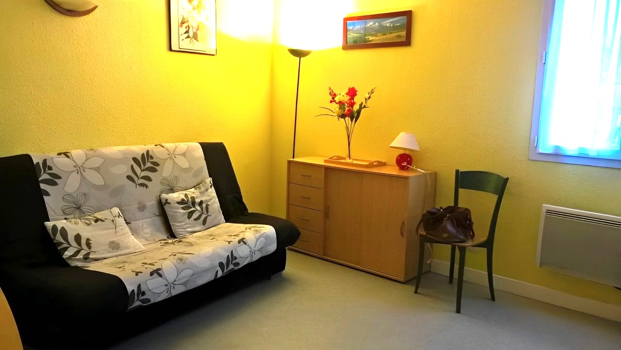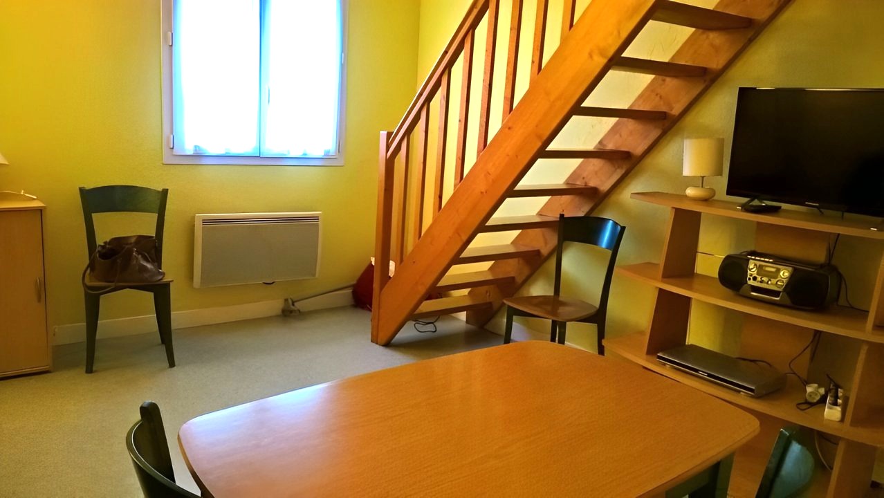Le studio est en étage, clair, composé d’une entrée, une salle de bain avec baignoire et WC. Dans le séjour : un clic clac, buffet, TV, lecteur CD, la fenêtre donne sur un parc. La cuisine est ouverte sur le séjour avec frigidaire top, lave-linge, micro ondes, four, cafetière, bouilloire et divers ustensiles de cuisine, vaisselle, matériel de ménage, fer et table à repasser. Fourniture du linge sur demande. La chambre est en mezzanine avec une armoire, lit en 140 table et chevets. Accès internet par box. linge fourni sur demande.