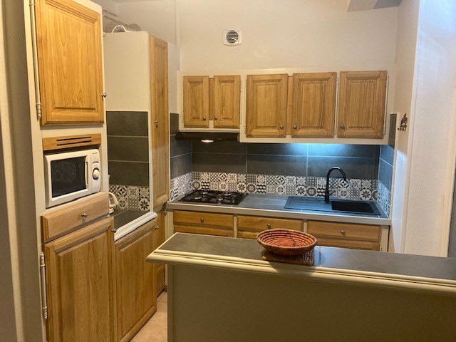 Entrée avec rangement, table et fer à repasser. Pièce à vivre avec canapé convertible, table gigogne, tv grand écran, lecteur de dvd, table pour 4 personnes avec chaises. Espace cuisine avec four micro onde, frigidaire, lave linge, hotte aspirante, plaque de cuisson, grille pain, cafetière électrique. Chambre indépendante avec lit en 140 et grand placard de rangement équipé de penderies. Salle d’eau avec douche , rangement, seiche cheveux et WC. Terrasse balcon équipée de table et chaises. L’ensemble entièrement rénové avec matériaux de qualité.