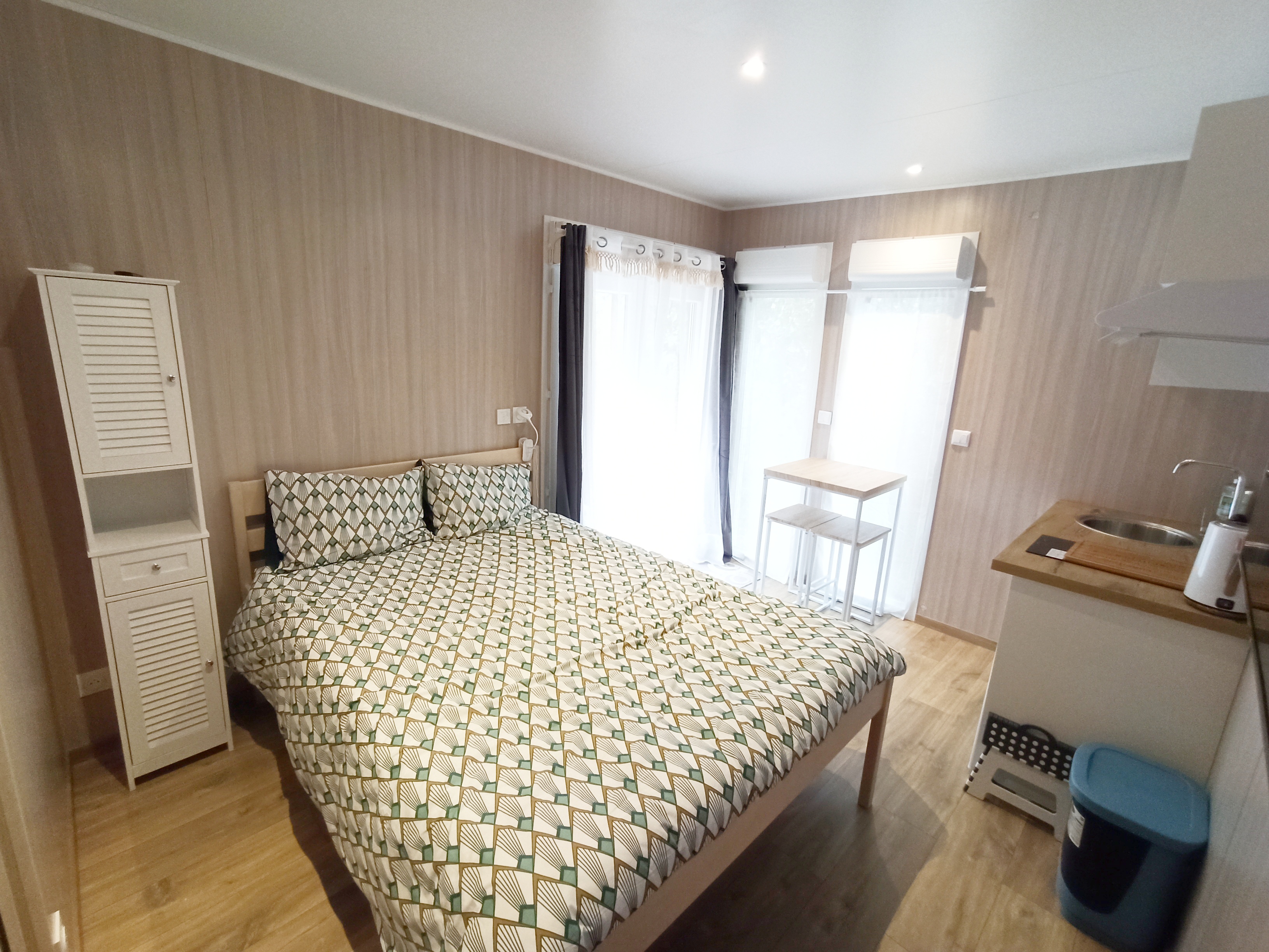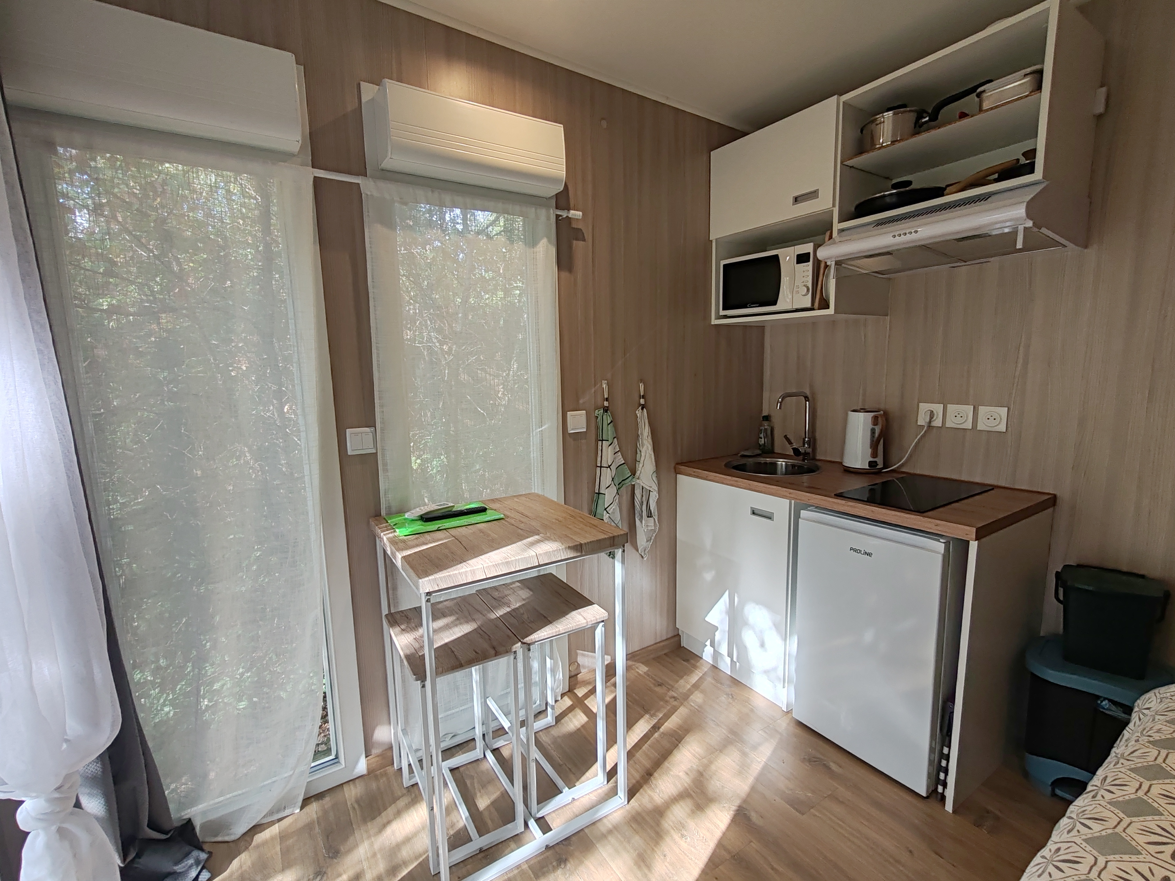Petit espace, grand confort : un lieu de vie moderne, chaleureux et parfaitement équipé, au cœur d’un environnement naturel préservé.